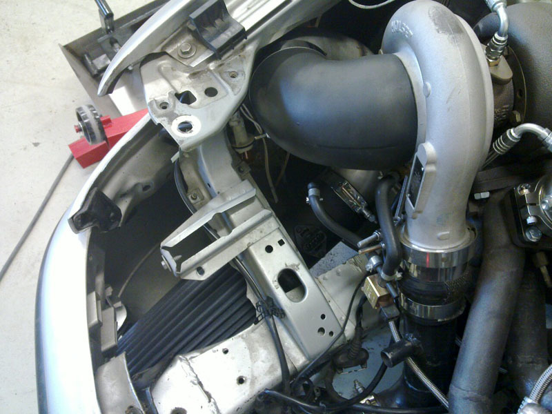 • Joo, on käynyt mielessä toi kyllä, mutta tuo on käytännössä ainoa paikka johon v-bandin sai sopimaan. Senttiäkään pidemmäksi DP:tä ei voi tehä kun ei sovi menemään paikoilleen sillon. Nytkin pitää vetonivelen suojakumin lämpöpelti ottaa pois asennuksen ajaksi. Liitos ei sovi myöskään ylemmäs ku ei oo rakoa ympärillä niin paljon. Siksi jätinkin ton käyrän niin et pää alkaa nousemaan taakse päin mentäessä, eli olis mutkan ulkoreuna alimpana, tai ainakin noin samassa tasossa pannan kanssa.