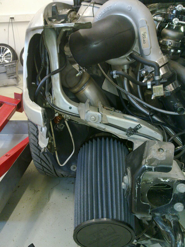 Innostuin värkkäämään tota ison maffin ilmanottoa. Melko tiukkaa tekee mutta juuri ja juuri sopi filtteri paikoilleen kun vähä puskurista sivalsi rälläkällä. Ei pitäis ainakaan ilman saanti olla ongelma..? :D Niin, vielähän tohon pitää sovittaa pässille tulo ja N75:lle samaten.