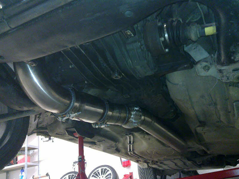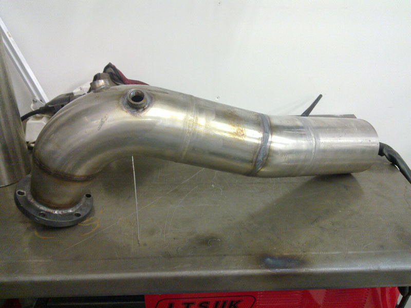 Joo, on käynyt mielessä toi kyllä, mutta tuo on käytännössä ainoa paikka johon v-bandin sai sopimaan. Senttiäkään pidemmäksi DP:tä ei voi tehä kun ei sovi menemään paikoilleen sillon. Nytkin pitää vetonivelen suojakumin lämpöpelti ottaa pois asennuksen ajaksi. Liitos ei sovi myöskään ylemmäs ku ei oo rakoa ympärillä niin paljon. Siksi jätinkin ton käyrän niin et pää alkaa nousemaan taakse päin mentäessä, eli olis mutkan ulkoreuna alimpana, tai ainakin noin samassa tasossa pannan kanssa.