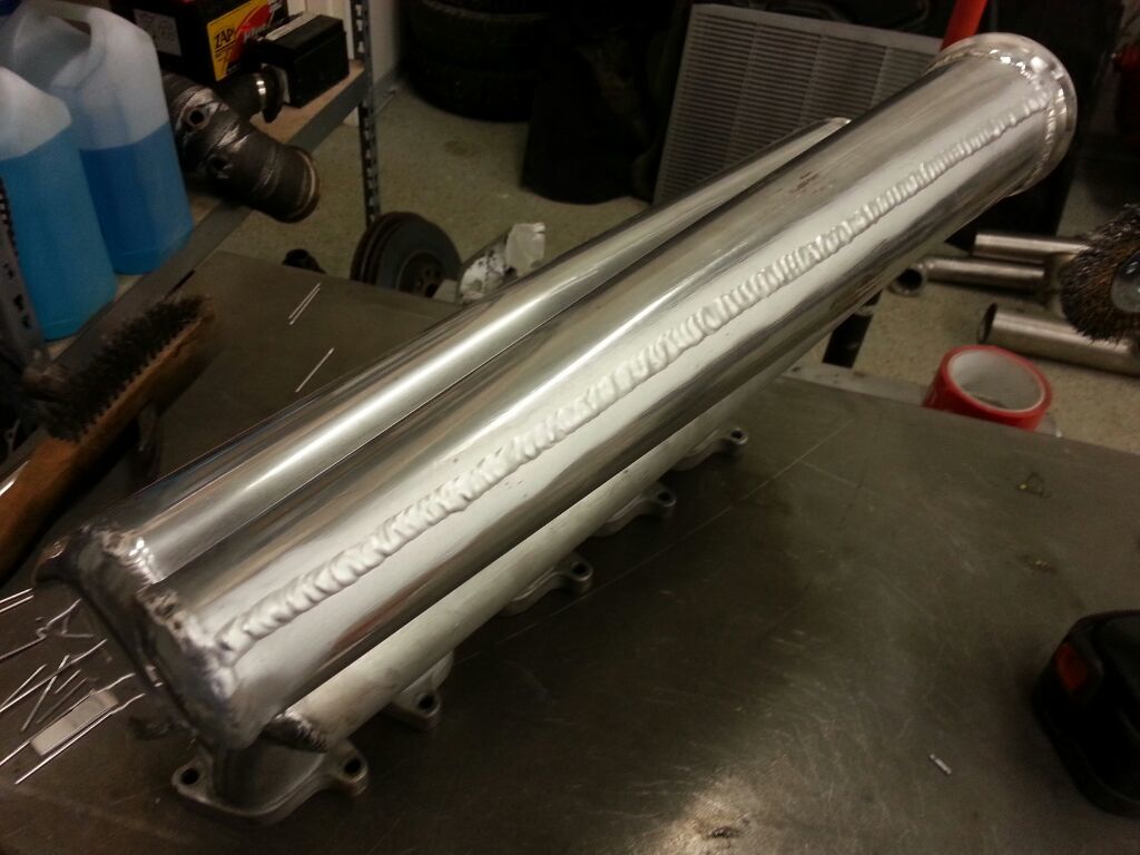 Joo, arvasin kyllä aiemmin heti silloin kun toi pääsi paisumaan et noi olakkeet olivat pettäneet. Ajattelin et rälläköin irti ton kartioputken ja prässään takaisin muotoonsa ja hitsaan olakkeet kiinni, vähä isommalla palolla. Vois vähä muutenkin vahvistella tota rakennetta. Toi ratkennut pitkä sauma on vielä se ylimääräinen sauma jota ei alunperin pitänyt olla, mutta kun joutu madaltamaan tota imusarjan sijaintia et mahtu konepelti kiinni niin joutu tommosen tekemään.