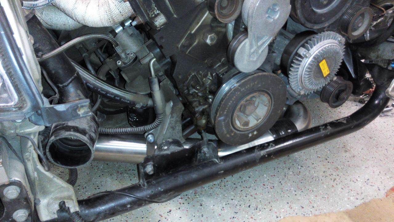 Vielä pitäis värkkäillä ottopuolen imuputken, se kun lähtee taaksepäin, onneksi niin ylhäällä et menee apurungon päältä. Jostain sen pitäis tuoda ylös ja eteen, ja sit oma suodatin sille. Todennäköisesti joudun heivaamaan pissapojan säiliön mäkeen ja siihen paikalle kartiosuodatin...