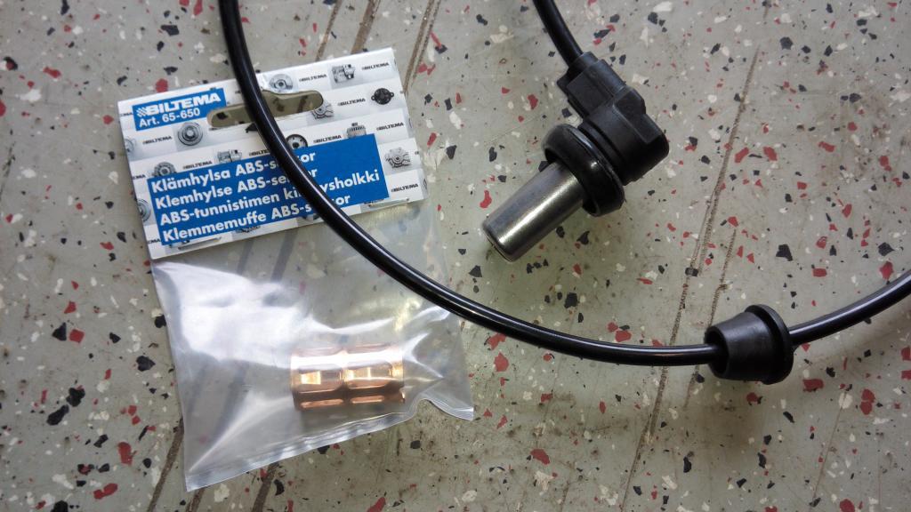 Eilen tuli myös fiksattua toi mittaristossa jollottava ABS valo. Toi on nyt aina syttyny ajossa tolppien ja jarrujen vaihdon jälkeen. Vika paikaallistu apparin etu-anturiin. Vastusarvoissa ei ollu suuria eroja, mutta anturi ei antanut yleismittariin mitään eloa vaihtovirta asetuksella kun pyörää pyöritteli. Hirmu työ oli saada vanha anturi pois, mut lähti onneksi viimein, joskin paloissa. Tilalle Motonetin halppis ja Bilteman holkki, ja hyvin pelaa ja valo sammu.