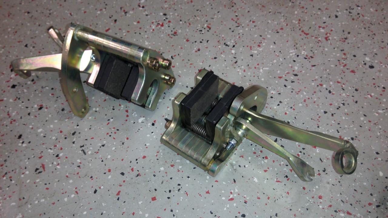 Nyt olis käppärisatulat valmiit. Tänään kävin hakemassa ne sinkityksestä ja samointein kasasin ne ja laitoin alle. Liu'ut rasvasin jarrusatularasvalla. Hieman näyttää vaijerin suojakuori hinkkaavan vakaajaan kun auto on laskettu alas, mut ei kuitenkaan niin et kiristäis sitä tiukalle, ei aiheuttane toimenpiteitä. Muutenhan noi tuntuis pelittävän mallikkaasti, pienestä rullauksesta kun vetäisee kahvasta niin auto pysähtyy heti. Eikä edes lujaa tarvi kiskoa. Toivottavasti ottavat tasan... Eikä niistä ihan hirveän tehdyn näköiset edes tullu. :D
