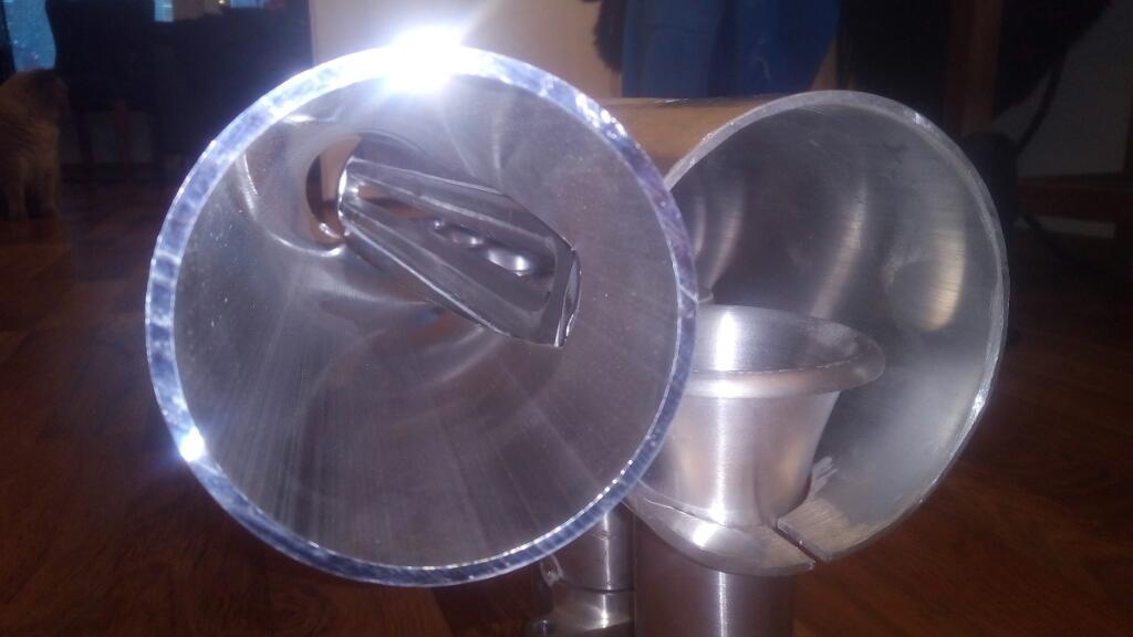 Mullahan oli evo1 imusarja kanttaamalla tehty levytavarasta, mutta ensimmäinen revisio ei kestäny kolmea baaria. :/ Vähä muutenki pullisteli hauskasti. Tää evo2 imusarja on nyt tarkoitus tehä pomminkestäväksi, toki mun alumiininhitsaustoaidoilla semmosta ei välttämättä saa aikaseksi, mutta pyöreä muoto ei ainakaan ala pullistelemaan. Iso plenumi on tosin jo 114mm putkea(3mm seinämä, pituus 460mm) että kyllä siihen tilavuutta ihan kohtuullisesti tulee.