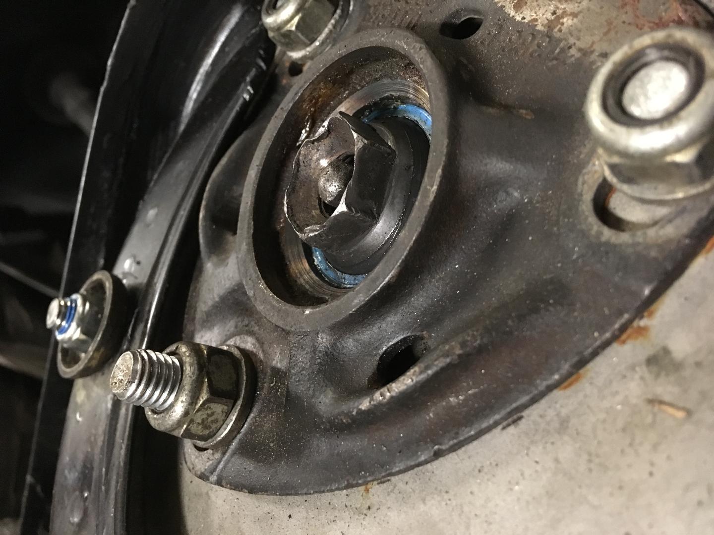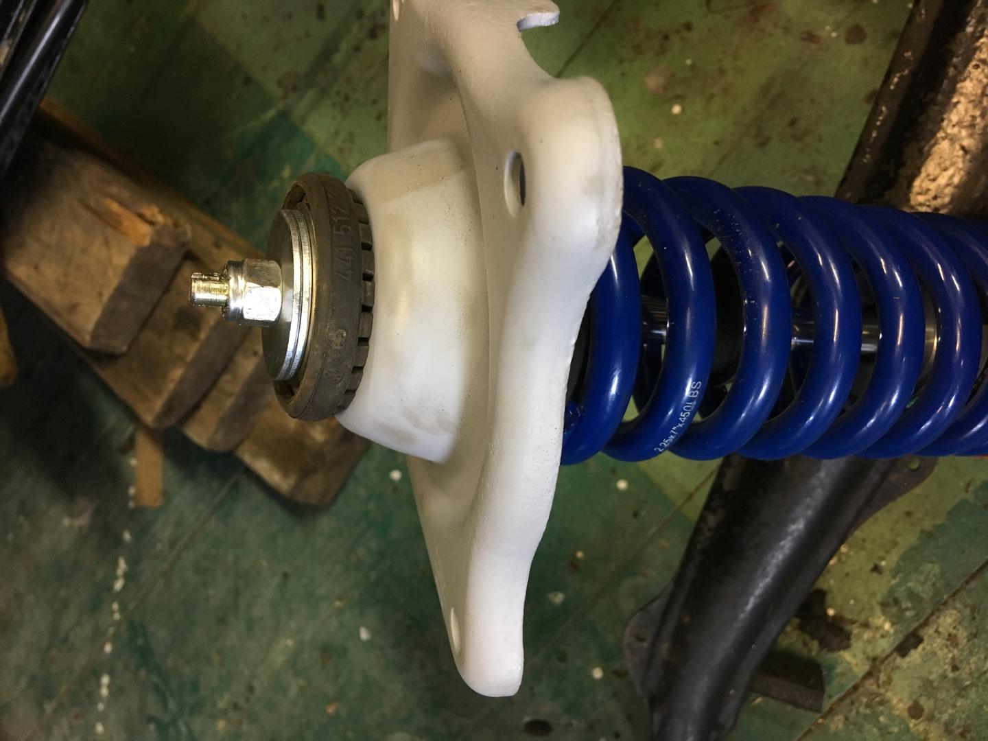 No problem, kolme aluslevyä ylälautasen ja yläpään laakerin väliin ja tolppa pyörii vapaasti. Muuten hyvä, mutta iskari ei tule tarpeeksi ulos mutterista. Pitää varmaan siis vaihtaa jousilautaset pienempiin. Nyt ne on tehty isomman halkaisijan jousien käytön mahdollistaviksi. Samalla varmaan varuiksi vaihtaa ne säätölautasen pultit 6-koloversioihin, joka varmistaa tilan riittämisen.