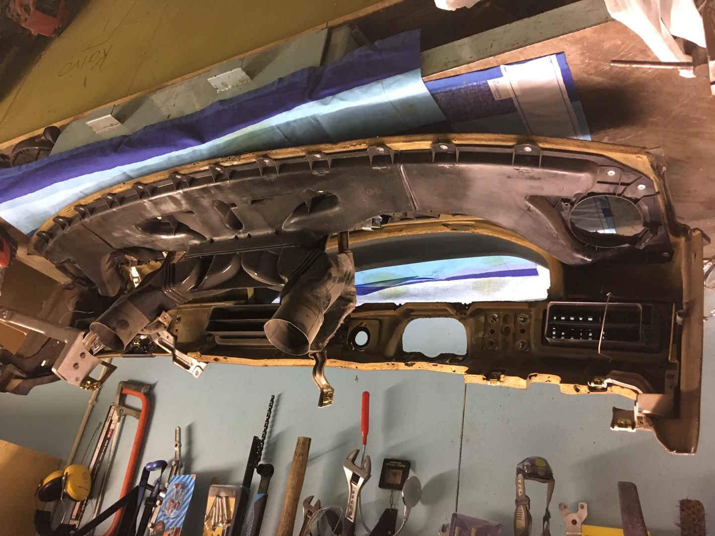 Muksujen synttäreiltä ei kehdannut karata, joten nostin kotitallissa kojelaudan pöydälle ja rupesin purkamaan sitä. Mielessä oli ottaa ilmakanavat talteen tai ainakin poistaa ylimääräinen materiaali.