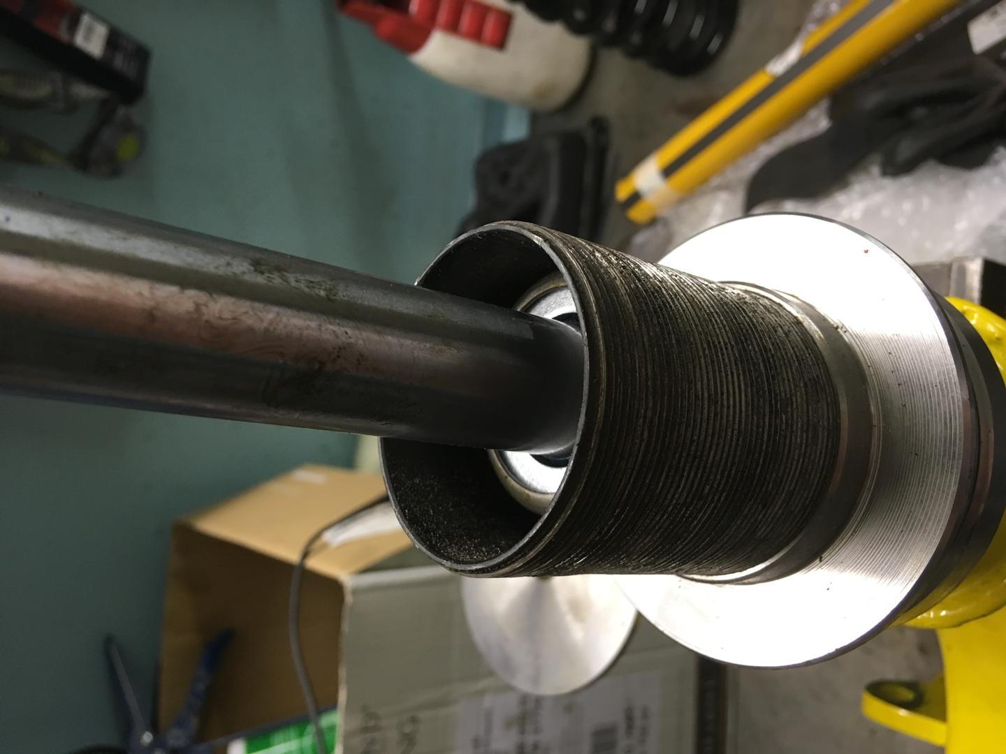 Otin etutolpat koesovitukseen. Putki on 16 mm liian pitkä ja vähän väljäkkälän oloinen. Tarvii siis lyhentää ja keksiä putkelle tukiholkki yläpäähän. Samoin jousilautanen on 58 mm jouselle, jousen ollessa 65 mm. Yläpäiden nivellaakerit on myös vaihtolistalla. Ne vaan on vähän jännää kokoa, 20x42 mm ei löydy ihan joka putkasta. Etralla näytti olevan ainakin sopiva SKF.