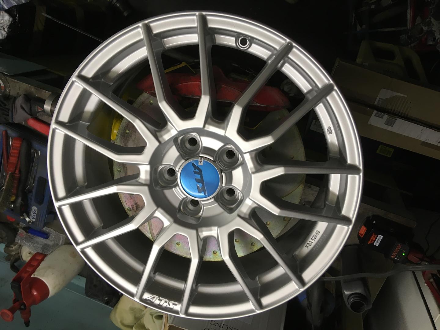 Vanteiksi löytyi viime keväänä hyvään hintaan ATS:n 7,5 x 18" valssit. Otin varuiksi isoimmalla mahdollisella ET:llä, että saa passata pyörän kohdalleen speiserillä. Jos eteen koittaisi saada takapäätä isomman raideleveyden auttamaan kääntyilyssä.