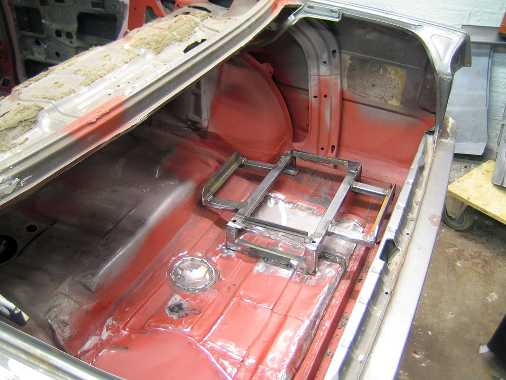 Alkuperäinen tankki oli kuulemma mätä, niin tein telineen Jazin turvatankille, joka tuli auton mukana. Tuonne pitää vielä hommata pumput, tehdä putket, ym.