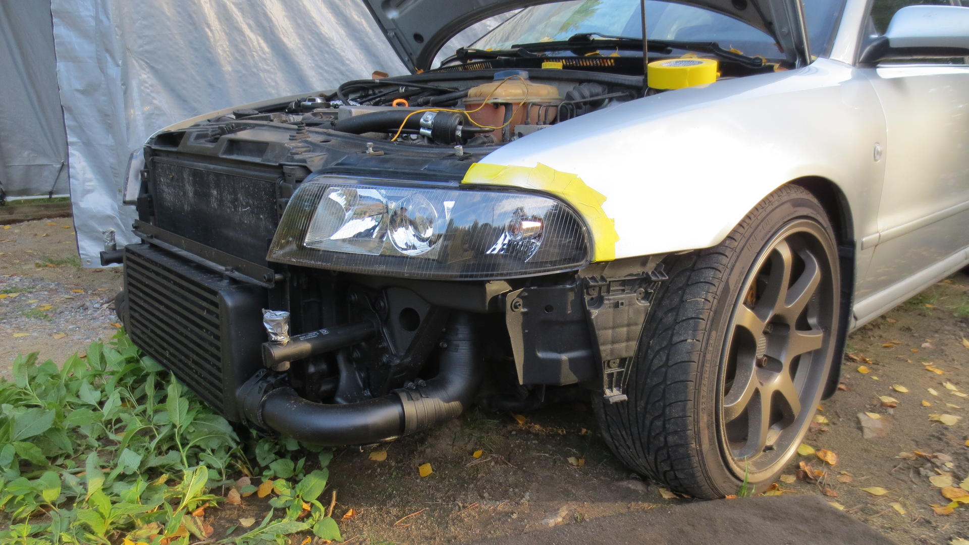 Audi ei ole saanut paljoa huomiota mutta on sitäkin vähän hoivattu, lähinnä on hankittu uuttaa osaa. FSI puolat ja delete kit, paisarin säiliö korkkeineen, pohjasuoja, etutukivarsi setti täydellinen, taka pään koiranluut (Lemförder). Asennettu uutta, short shifter, ajovalot facelift malliset, valmistaja Depo, mustat pohjat, Lamin-x gun smoke kalvot. Konehuoneseen on tilattu suojaputkea johdoille jokunen metri ja uusi öljynpaluu tbo ja 3,5" aluputkia mutkia, ilmansaantia varten ensimmäinen intake on jo tehty mutta tämän koko on 3" ja malli on koeversio, testiä varten. Jokin kyl unohtu tästä, mutta lisätään.