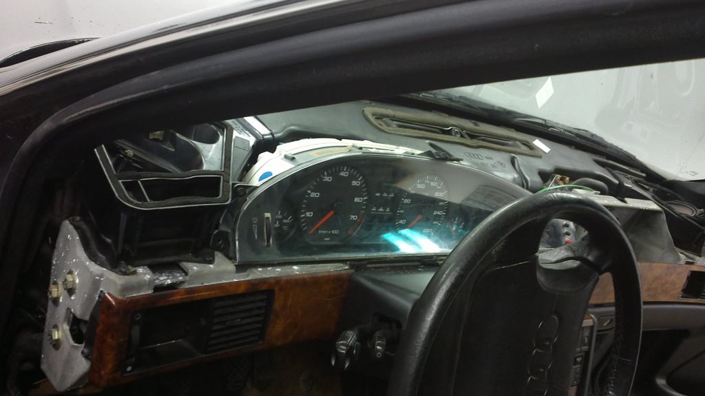 Paikanpäällä paljastuikin pelastettavissa oleva lötkö. Lötköt jo tuttuja autoja ja ovat nuo Audin vanhemmat kasikoneet tulleet tutuiksi vuosien saatossa. Itse autosta: Parikymmentä vuotta ollut vanhemmalla miehellä ja hänen perheellä ajossa. Puheiden mukaan ollut Audilla esittelyautona (tiedä tästä). Huollettu samoissa paikoissa vuosien saatossa ja korjattu hyvin pitkälti alkuperäisillä osilla. Iso nippu kuitteja tuli mukana, joista oli mielenkiintoinen selvittää etkan avustuksella, mitä osaa olikaan laitettu. Mm. ufot uusittu 2000-luvulla.