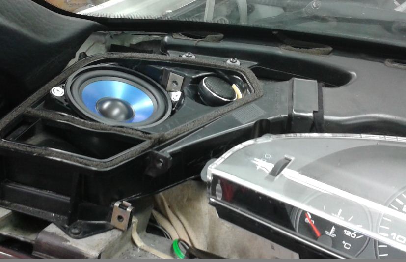 Viimeinen auto minulla, johon musiikkilaitteita olen rakennellut. Viime syksyllä sijoitin vahvistimen uuteen paikkaan kontissa, kun purkuv8:sta otetut puhelinsysteemin raudat päätyivät tähän autoon. Oikealle reunalle kontiin tuli teline, jossa on vahvistin nyt kiinni ja sen peittona tehtaan tekele (laitan kuvaa myöhemmin). Samalla päivitin kertaalleen kojelaudan erillissarjan uuteen, kun vanhat antoivat mehut pihalle. Radiota pystyi kuuntelemaan normaalivolumella, muuten olikin pärinää. Paikallisesta liikkestä löytyi järkihintaan Sinusliven sarja, jossa valmiina 4" midit yms rensselit. Tässäkin ajatuksena, että auton sisustan ilme pysyy vakiona. Eli mitään kaiuttimia ei ole esillä.