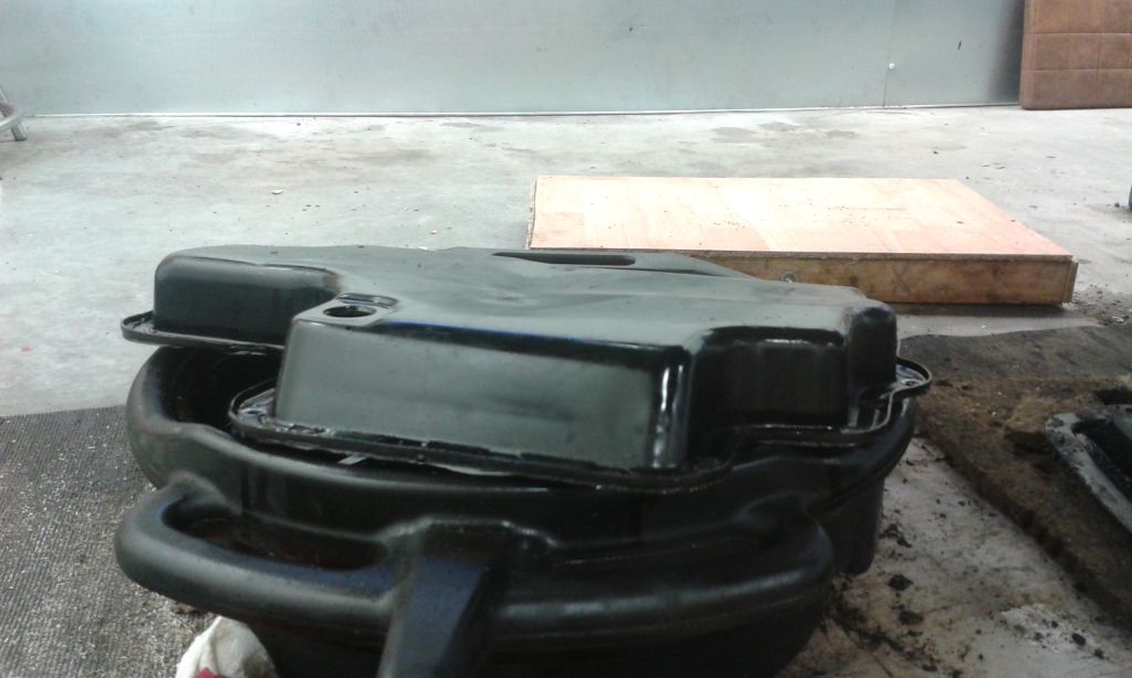 Sitten jokavuotinen öljynvaihto paisui hieman. Öljypohja vaihtui suoraan ja öljynpainemittarin anturi vaihtui "vähemmän ajettuun" osaan, joka ei toivottavasti vuoda läpi. Kertaalleen vaihdettu öljypohjan tiiviste, mutta ei vaan pidä. Liekkö syynä malli "banaani". Öljypohjan 4 pultin irrottamiseksi piti kallistuksenvakaajan apurungon kiinnikkeet päästä irti. Mikään työkalu väliin ei olisi sopinut ja tehtaan korjausoppaassa ei tuosta ollut mainittu mitään. Öljypohjan pulttien kiristysmomentti on 10nm, eli normi 6mm pultille?