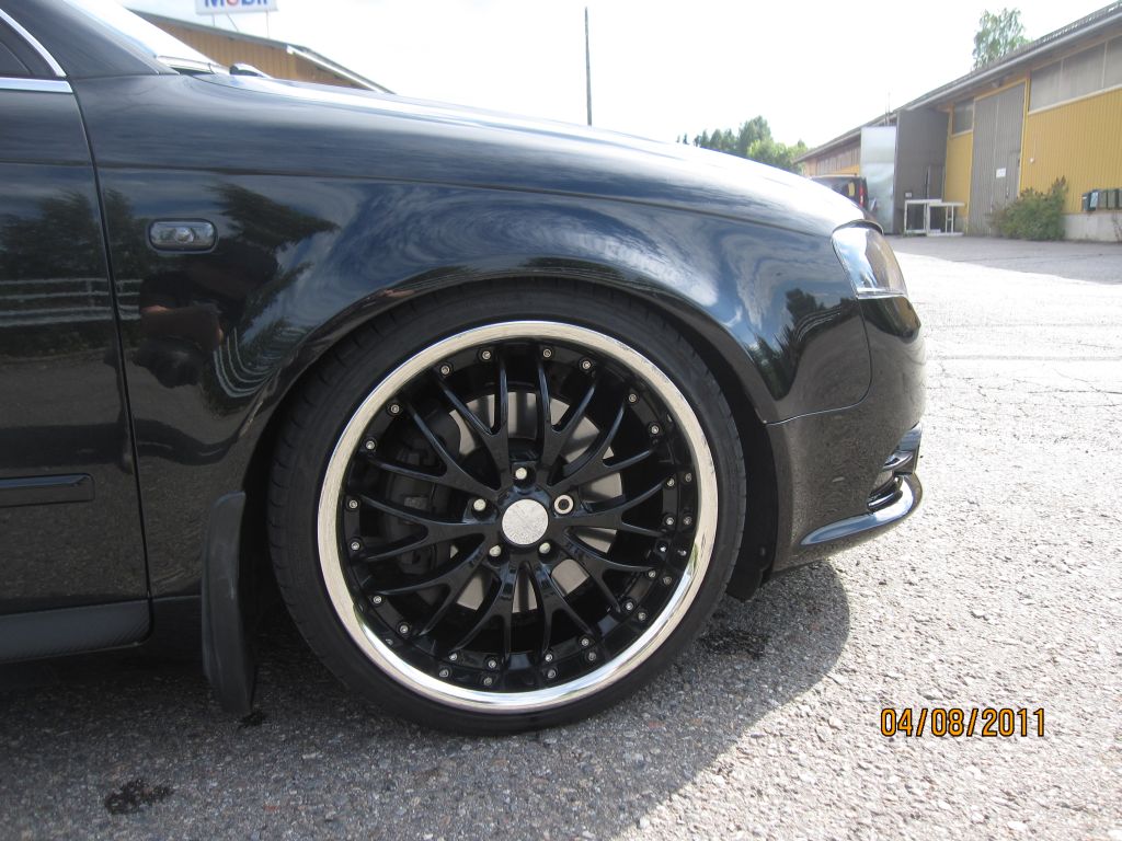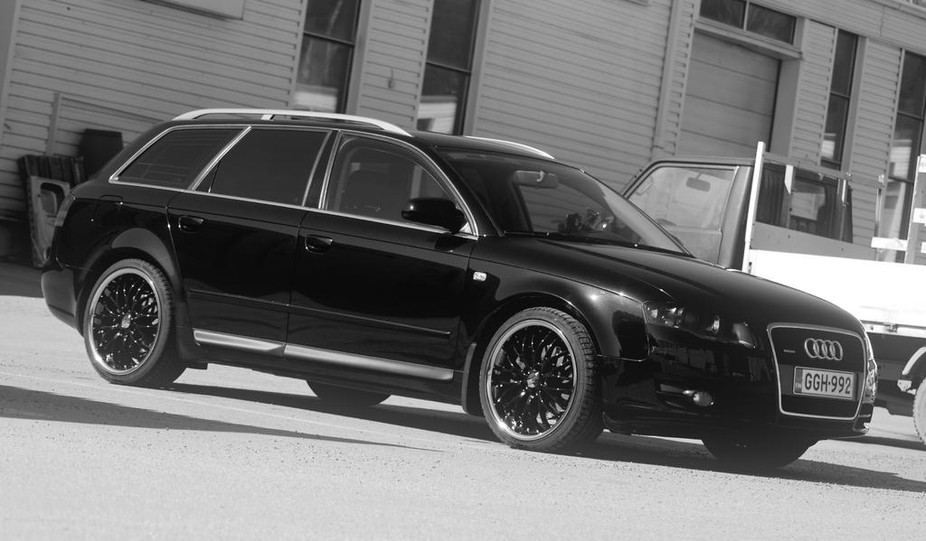 Auto tuli hommattua itselle kesällä -08. Auto on siis A4 B7 -05 ja sport mallia. Vakiona autossa oli siis sportalusta ja -sisusta. Mukana tuli jotkut monta kanttaria nähneet 18" vanteet. Eka kesä meni rauhallisesti auton laiton suhteen muuten mitään ei tapahtunut paitsi Murre tummensi kaikki auton takalasit sopivan mustiks.