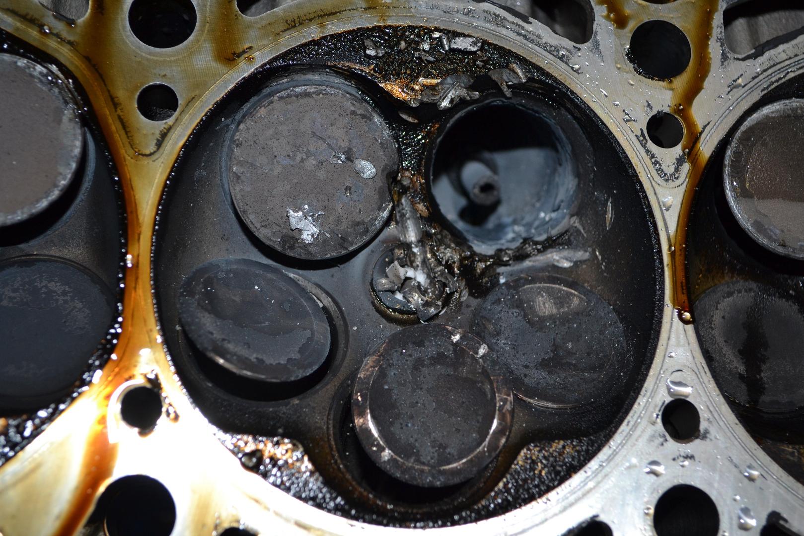 • Näin kouluja käymättömänä maallikkona en ole ihan varma mutta käsittääkseni venttiilinlautasen ei kuulu olla tuumaa männän sisällä. Se siitä moottorista. *napsh*