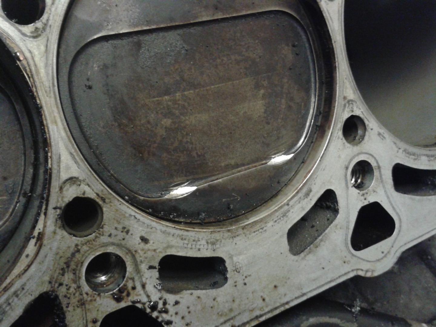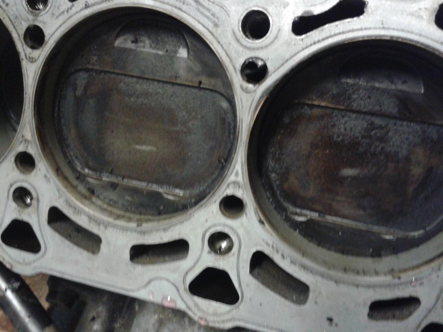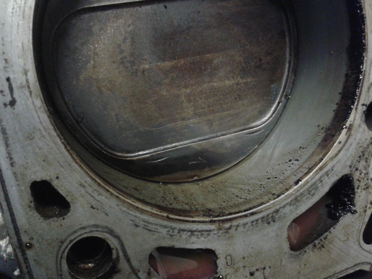 Tosta vanhasta ei saa enää mitään järkevää. Kaikissa kahdeksassa männässä on jälkiä venttiileistä. Sitä myöten käytännössä kaikki imuvenat sais vaihtaa ja toisen kannen uusia kokonaan. 7. pytyn sylinteri on pilalla ja runkolaakereista ei tiedä mitään muuta kuin sen että varmaan on kipeää sielläkin. Ehjää osaa on varmaan kampura ja nokkakepit.