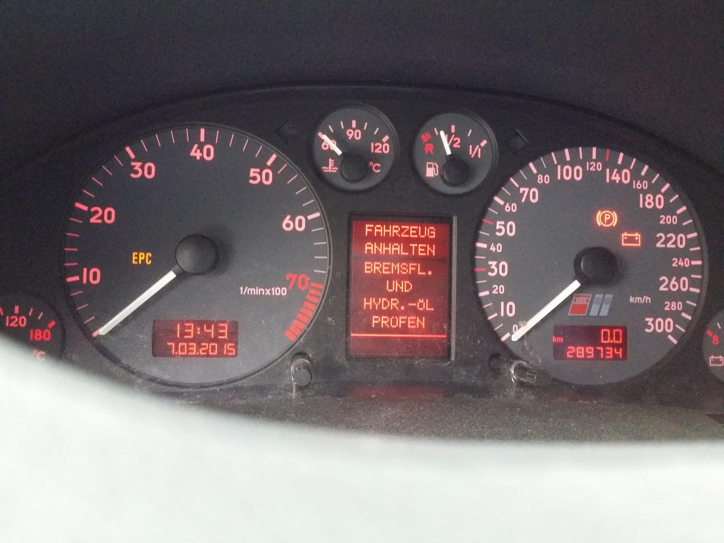 • Eilen syttyi kovan metelin kanssa Autocheckiin taas uusi varoitus. Entuudestaan ei ollut tuokaan tuttu. Nestemäärien pikainen tarkistus ei aiheuttanut toimenpiteitä. Päätelmä: Jarrunesteen määräanturin koho jumissa. Pieni kopu säiliön kylkeen ja vikavalot sammui. Taas kovaa ajoa kohti maailmanloppua.