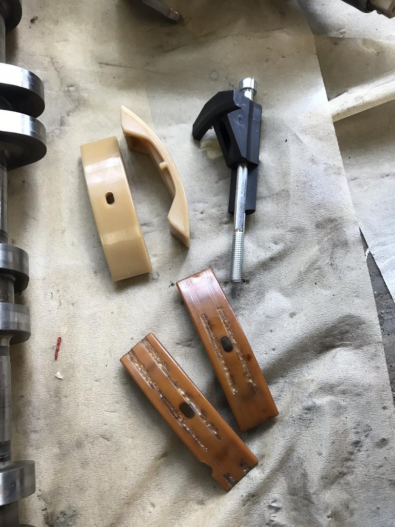 • No nyt on näpit liattu. Se nostin tai oikealta nimeltään välyksensäädinvika osoittautui virhearvioksi. Kävin kaikki säätimet läpi ja vain yksi tuntui olevan jumissa että joutui enemmän voimaa käyttämään kuin muihin. Säätimiä irroittaessa joutui väkivalloin repimään 2/20 pihtien kanssa irti jolloin säätimen päässä venttiiliä painava keinulautanen ja istukka murskautui käyttökelvottomaksi. Loput lähti kuitenkin ihan sormin vetämällä. No 17,6 €/kpl savilahden autosta ei paha rasti uusia 3 kpl. Samalla tuli myös tilattua laakerikansien ja säätimen M6x40 pultit 26kl, kampiakselin pultti sekä stefa kun oli jo alkanut mehimään. Nekin n. 17 €/kpl. 200 Nm + 180° oli jo sellainen voima pultille että tartti käydä tuttavalta lainaamassa 3/4" väännin ja hylsy lainaan. Ihan ehkä aavistuksen vajaaksi jäi tuo 180° kun tuntui loppuvaiheessa että pulttii kääntyy helpommin ja löysemmin. Eikö se tuollein isommissa pulteissa kuitenkin kun venyminen alkaa. Tuskin se ainakaan alko olkapää lämpiämään siinä vaiheessa =) Kone läjään uudella contitechin hihnalla ja ebaysta tilatuilla kiristäjän laahainpinnoilla (mukana tuli myös kiristäjän työkalu nr. 3336) ja vehkeet tulille. Sama rallatus kuuluu niin kuin ennenkin. Tähän jo kyllä olinkin henkisesti valmistautunut että eikai tästä näin helpolla voisikaan selvitä.