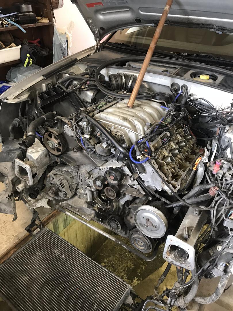 Eipä se vikakohde varikolla selvinnyt ja vaaroja uhmaten ajelin kone kolisten kotiin. Nyt nappasin venakopan tallissa irti koska rallatus selvästi kuuluu venttiilikoneistosta. Pelkän venakopan irrotus ei kerro yhtään mitään, kaikki näyttää silmämääräisesti olevan kunnossa ja endoskoopilla tulpanreiästä katsoen sylinterit ja männätkin aivan ok. Tätä puoltaa myös se, että moottori käy edelleen kaikilla kahdeksalla ja voimaa on ihan normaalisti.