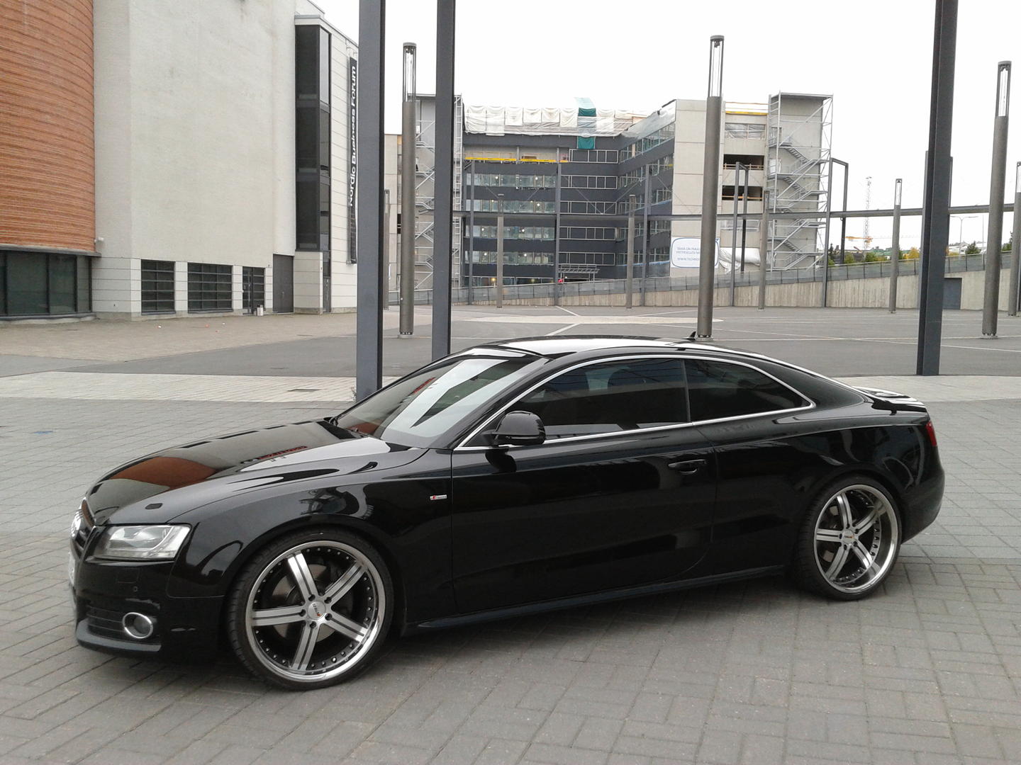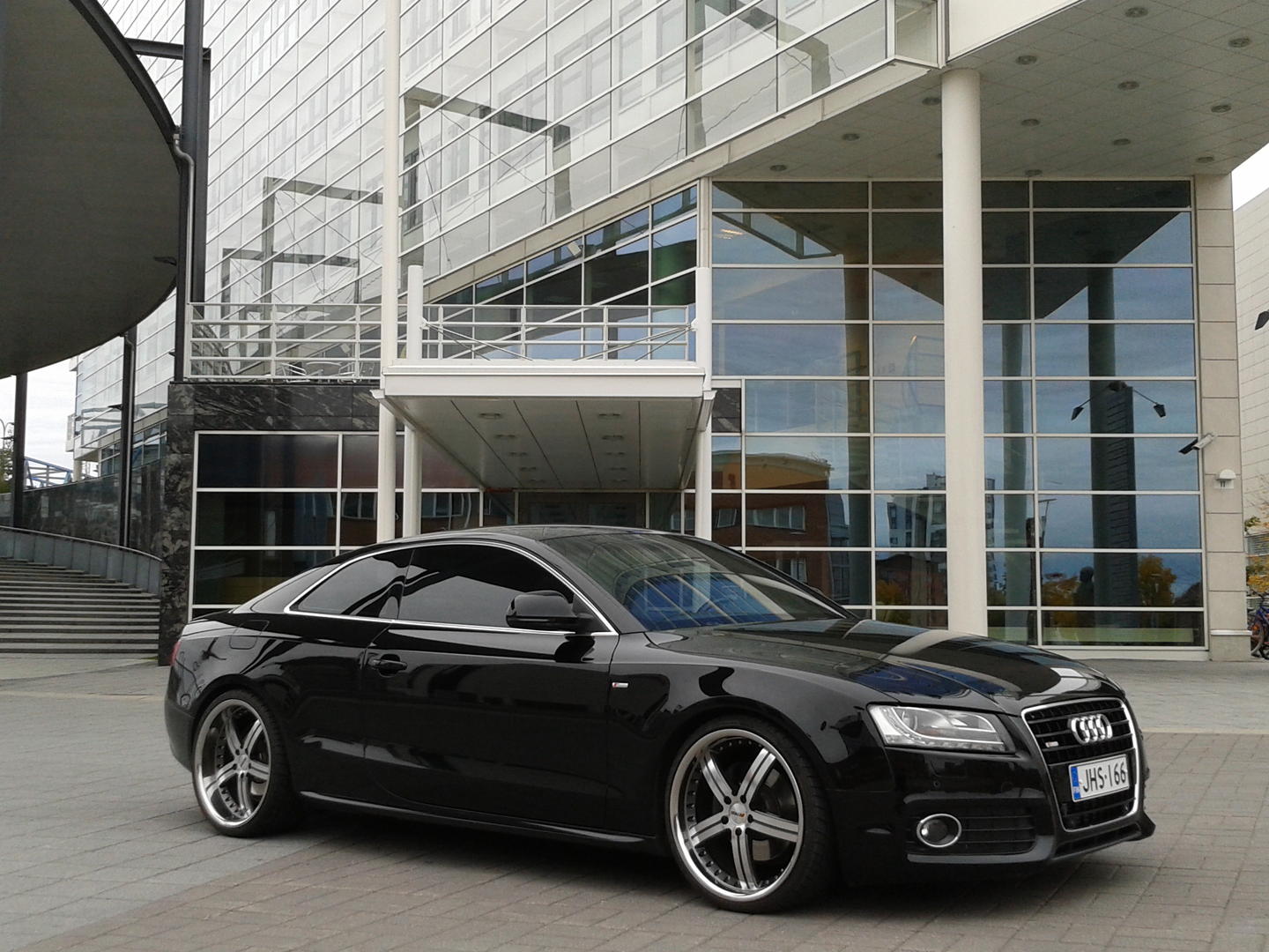 Softa on päivitetty Karalan versiolla, S-linen alkuperäiset tolpat Eibachin jousilla, Fk:n 20mm:set spacerit joka kulmassa ja Petrolin 20"x10" & 8,5"x20" vanteet Falkenin 285/25 ja 235/30 kumeilla. Lisäksi ikkunoissa on 50%:set kelmut ja sisustan led-valopaketin kaveriksi on vaihdettu ledit kaikkialle. Niin, ja sisällä on ne kimppatilauksen kautta hommatut kangasmatot. :D Alkuperäiset kun tuppas olemaan kantapään kohdalta lähes puhki.