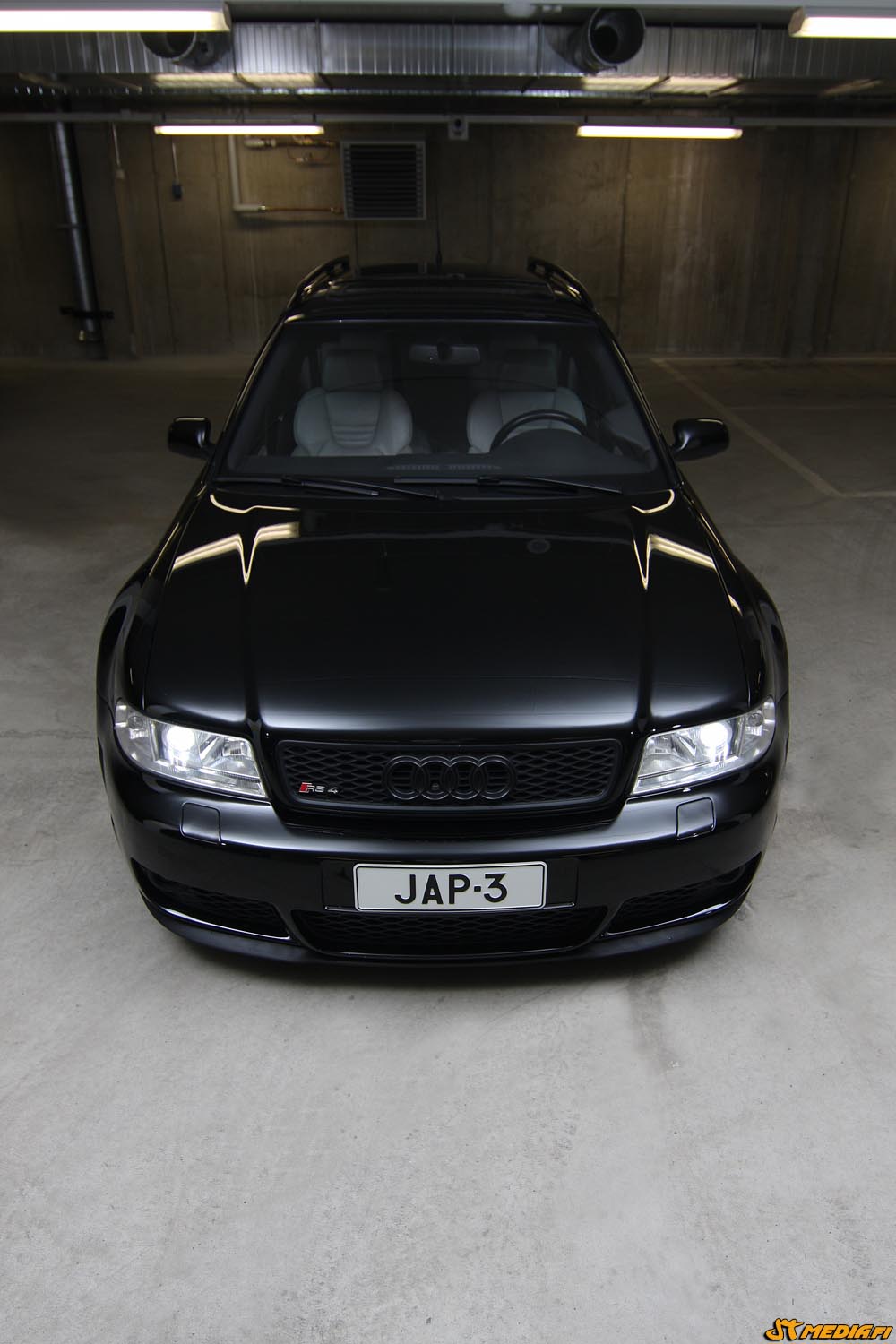 Ulkokuori niin ikään on vakio ilman mallimerkintöjä. Lähes mustat lasit takana. Kesävanteina RS6 Replicat koossa 19, talvella alle pyöräytetään jotkut ex-Urssista periytyneet harmaat ja soikeat, joissa ympärillä mustat ja pyöreät.