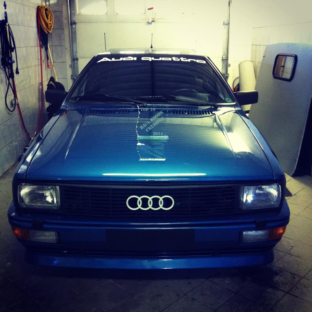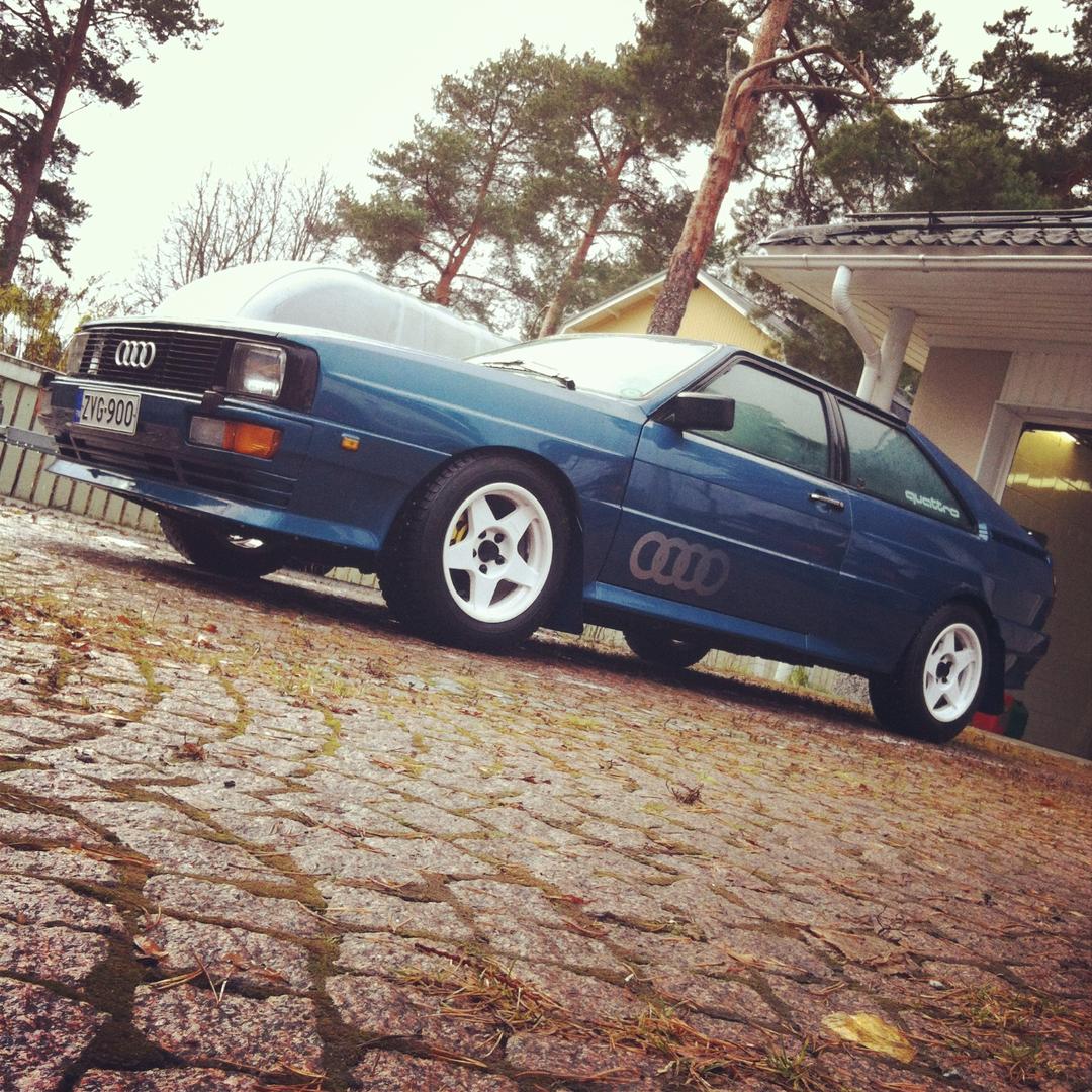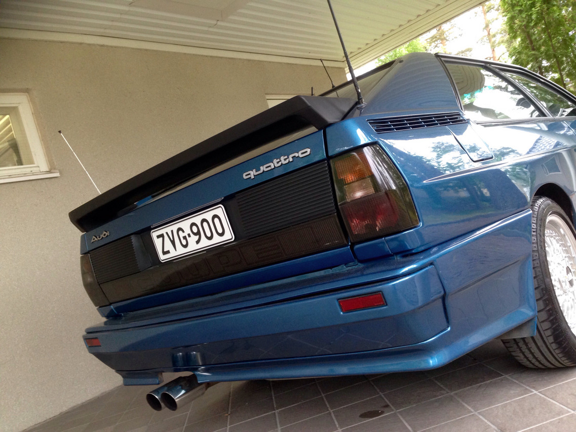 Takasivuikkunoihin odotellaan nyt Ebaysta ruskeita quattro-tarroja nykyisten ylikokoisten valkoisten tilalle. Seuraavaksi olisi tarkoitus tehdä hieman paikkamaalailua ja teipata koriin kuuluvat alkuperäistä vastaavat hopeiset kontrastiraidat.
