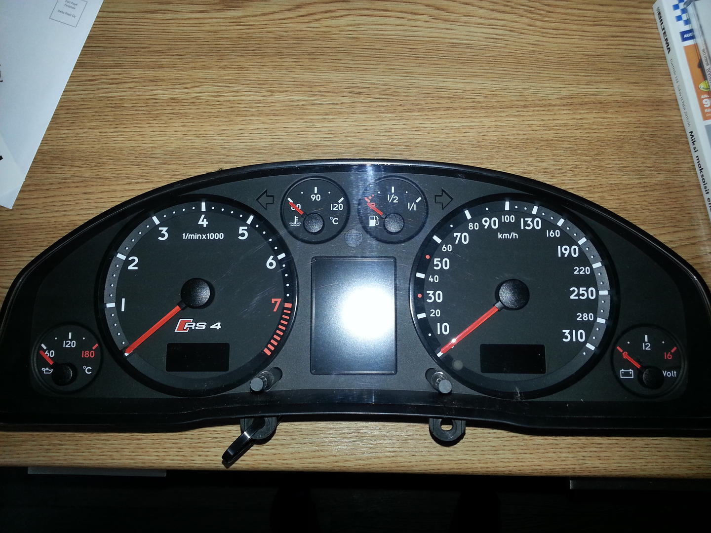 Hieman piti itseä hemmotella ja hommasin 2001 RS4 mittariston. Tuo pitäisi saada seuraavaksi rokkaamaan autossa. Ulkomaisia foorumeita selatessa totesin, että ei ole mikään tekemätön paikka saada toimimaan tässä puolivajakki facelift mallissakaan.