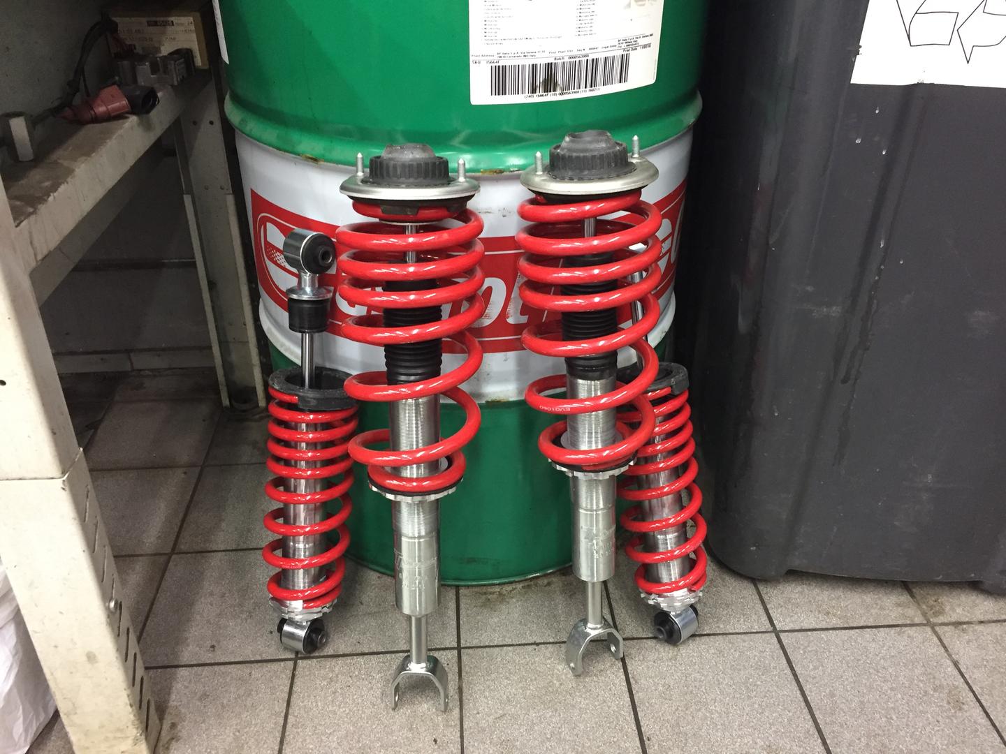 • Laitoin coiloverit uusiksi ja samalla askartelin suojapussit tolppien ympärille. Tolppiin tuli kaikki uudet kumit ja tuet. Toivottavasti ei enään jatkossa tarvi tapella jumiutuneiden säätöjen kanssa! Samalla laitoin etualavarsiin powerflexin puslat.