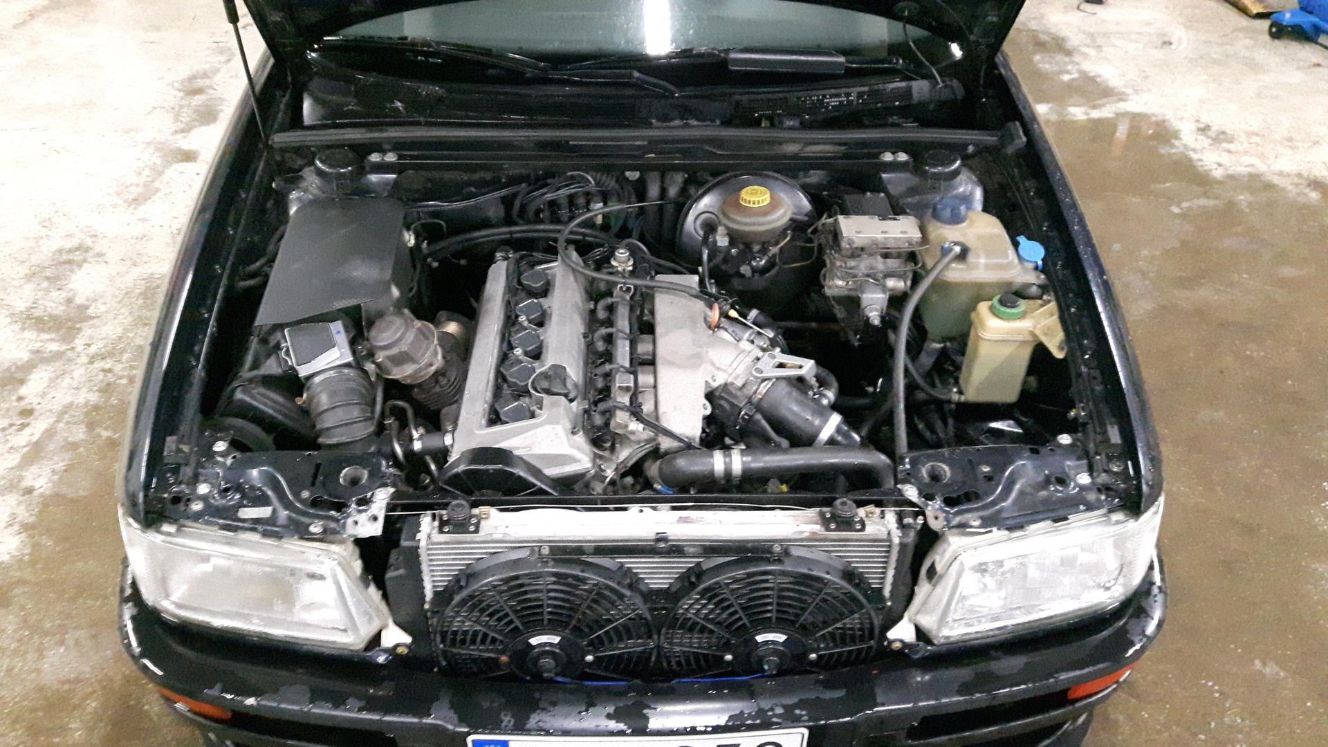 Nykyisin konehuoneessa asuu hieman erilaisempi ratkaisu, eli alakerta on NG moottorista (NG alakerrassa samat veivit ja kampiakseli kuin turbossa, lisäksi männänlaen öljysuihkut löytyy) ja yläkerta AAN moottorin. Turbo, imusarja ja ohjainlaite myös peräisin AAN koneesta, jakopää kokonaisuudessaan 7A moottorista, Moottorin johtosarja modattu 3B johon lisätty suorasytyn johdot. Puolat peräisin VAG 2.0 ALT moottorista ja tulppina boschin tulpat joita täällä foorumeilla suositeltiin käyttää puolamodin yhteydessä, ei RS2 tulpat. Porkkiksen softa.