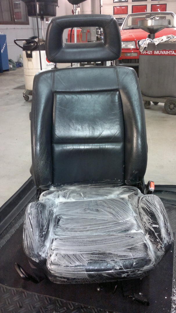 Käsittelitkö penkit jollain suoja-aineella? Tein viime kesänä saman pesuhomman BMW:n penkeille. Auto Glymin värittömällä nahanhoitoaineella pinta jäi vähän harmahtavaviksi, mutta laitoin sitten Liberonin mustaa nahanhoitoainetta ja johan näytti paremmalta. Suosittelen.
