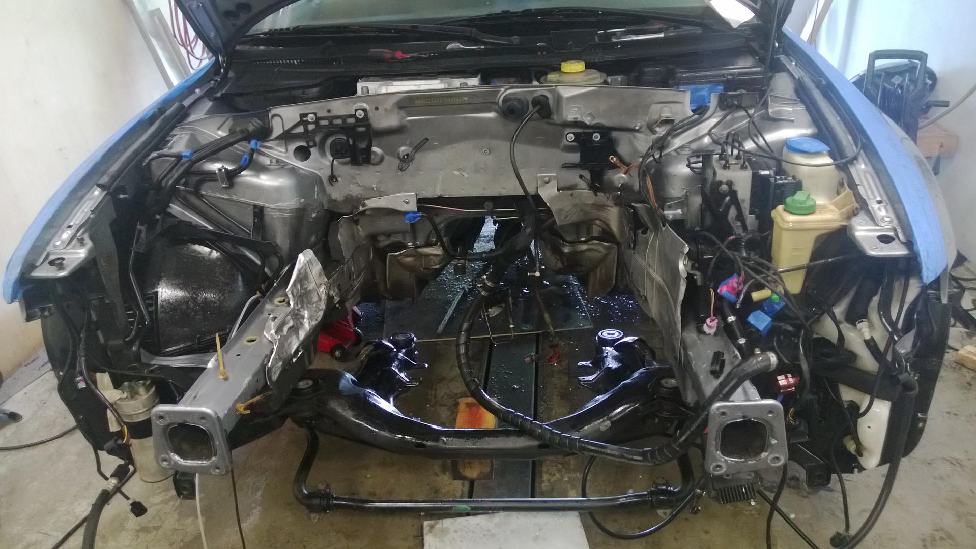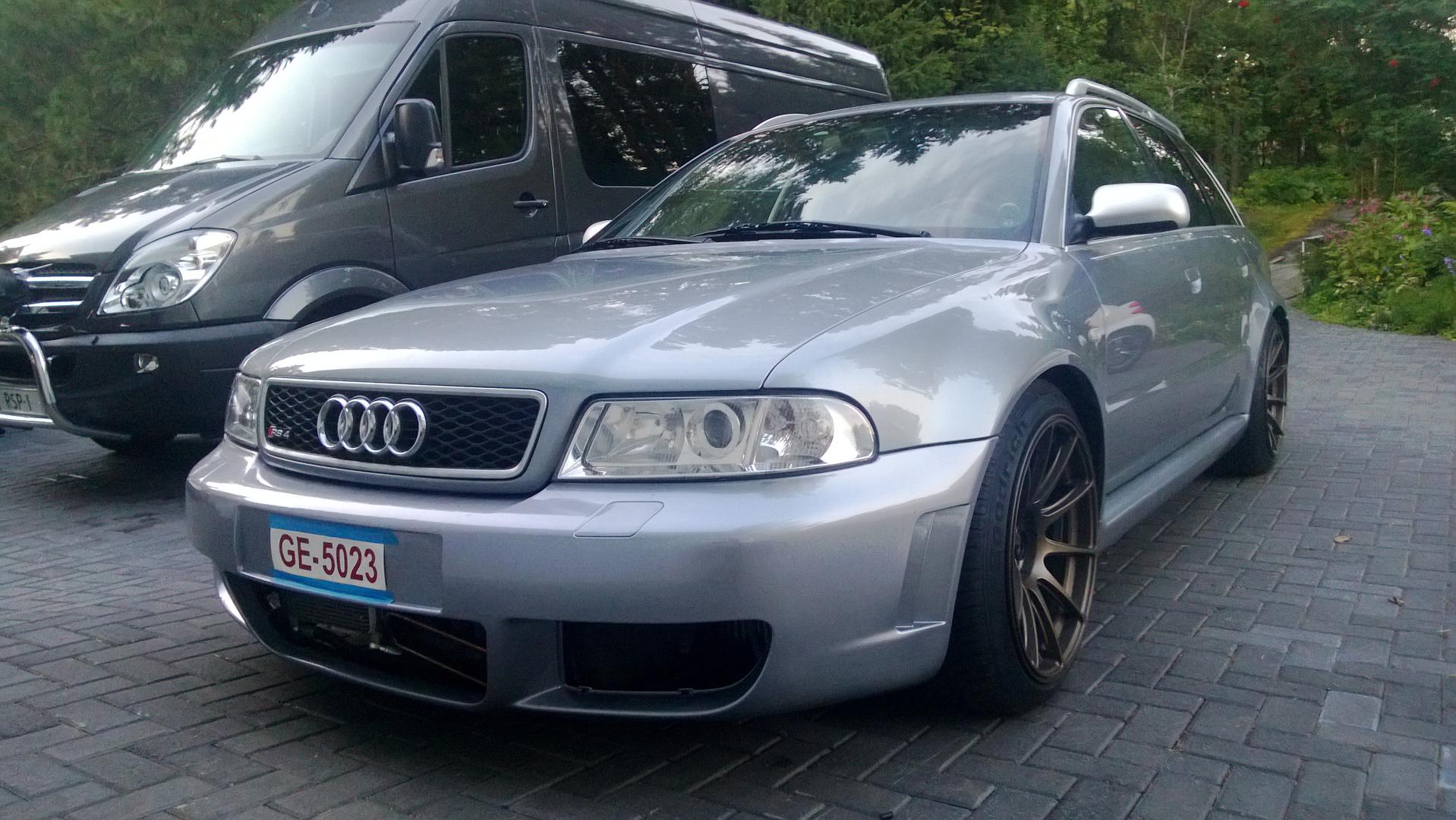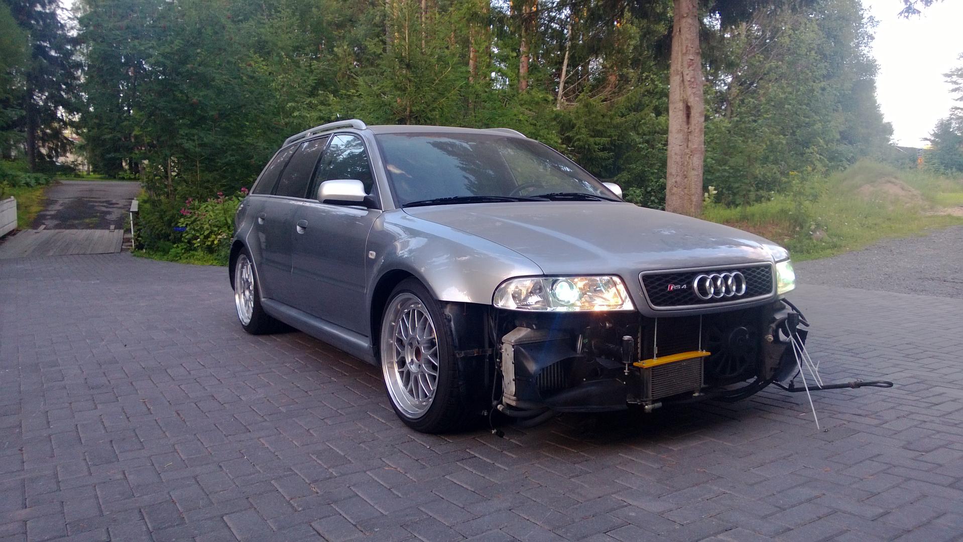 Tuli avk:lta hommattua tuommonen RiSa (kirjaimellisesti). Edellinen omistajan vaimo ajanut autolla päivittäistä ajoa, mutta yhtenä päivänä betoniporsas oli hypännyt eteen n.30km/h vauhdissa. Possu oli pysähtynyt hyvin puskimeen ja kennoihin rikkomatta sen kummemmin kriittisiä paikkoja. Sen jälkeen vietiin audi centteriin vahinkotarkastukseen jonka arvio oli 21,500€ ilman moottorin sisäisiä tarkastuksia(tuntuu hullulta). Auton huoltokirja on hyvin täytetty ja kaikki kuitit on tallella. Edellinen omistaja sanoi, että kovassa vedossa paineet jää 1bar (pyynti 1.5),tuokin toivottavasti selviää kun vikakoodeja pääsee lukemaan.