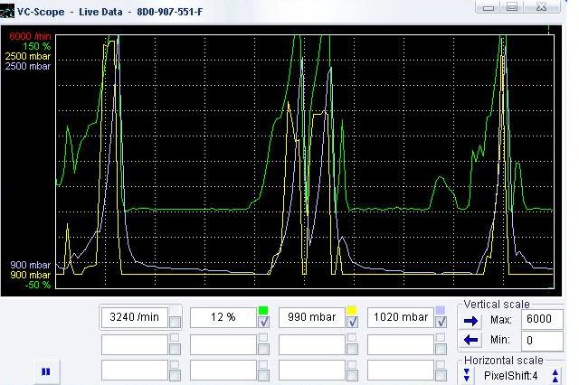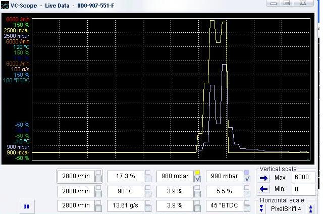 4 vedätys 160km/h asti. Näkyy hyvin kun paineet tulee samanlailla porrastaen perässä, mutta ei nouse samanlai.
