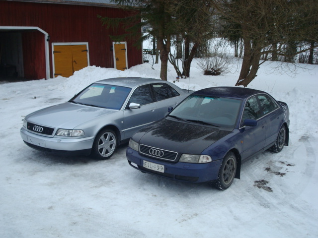 Toinen talvi pääsi puoleen väliin ja pohdintoja meni vaparin turbottamisesta V8 änkemiseen pellinalle. Sitten eräs mahtava tyyppi tältä foorumilta "KILLERI" pätkäsi Audi S8 D2 4.2 V8 32v 6-gang quattro 340hp 410nm myynti-ilmoituksen eteeni ja auto sijaitsi sopivaan hintaan virossa. Nettiä tutkailtuna löytyi miltei rakennusohjeet suoraan kuinka kone mahtuu 6-lovisen lootan kans B5 koriin joten riskeiltä vältyttiin. Välittäjäkin löytyi miltei heti ja kauppoja hieromaan autosta. Kokonainen Audi S8 D2 4.2 V8 32v 6-gang quattro 252tkm oli pihassani ihan kaikkineen bensoineen ja junalippuineen hintaan 4757,- euroa.