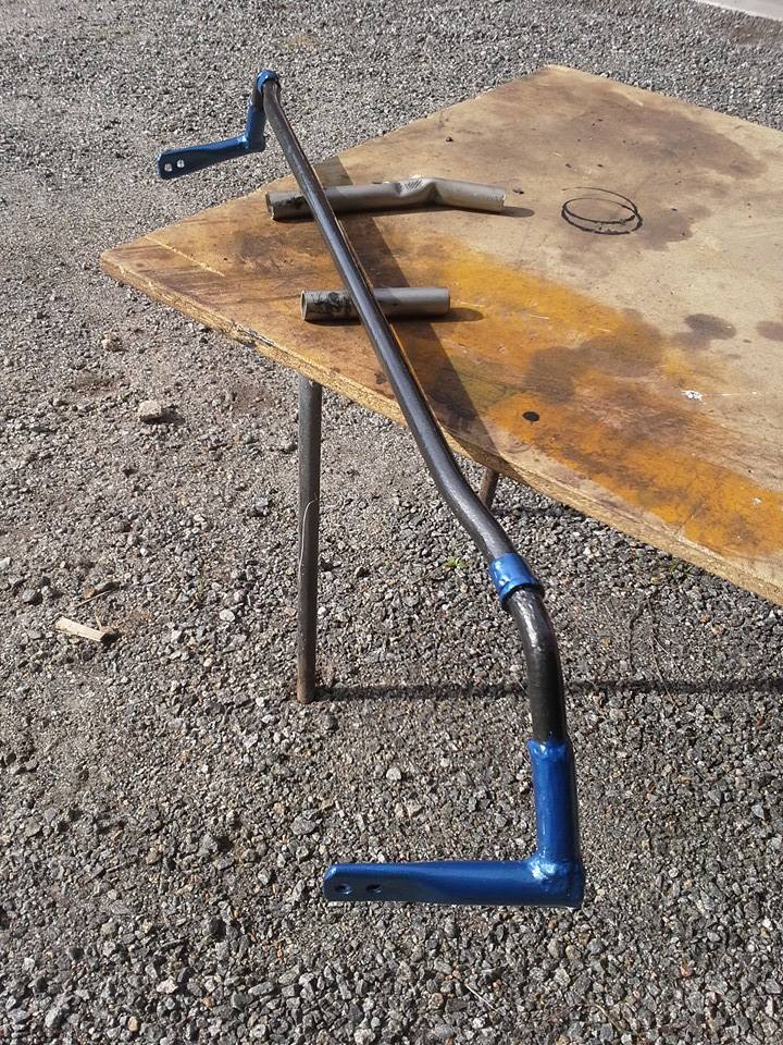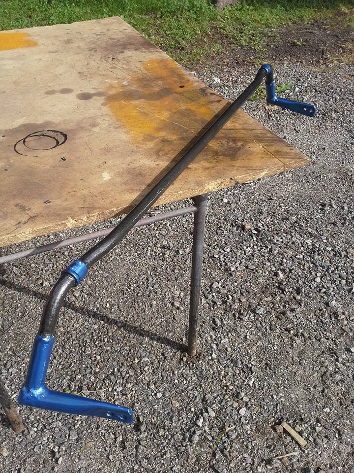 Siinä kun niitä jarruja tuli tuijoteltua niin taka kallistuksenvakaaja otti monesti silmään. Oli se niin onnettoman näköistä keppiä, että vaihtoon meni (15mm). Kattelin siinä hintoja 19mm ja 21mm takakepeille, mutta jotenki taas hinta lähti lapasesta. Tein sitte itse ja säästin ;-P