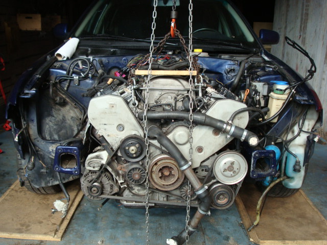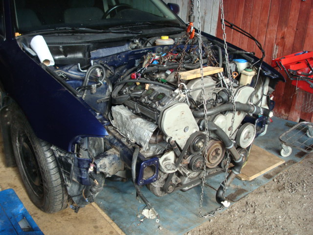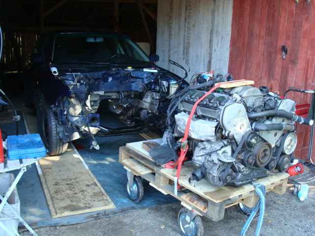 Otan vaihe vaihelta tässä nyt kuvia kasauksen eri vaiheista niin ei jää mitään epäselvää sitten tuleville A4 B5 V8 32v swappaajille muutakuin sähköt.