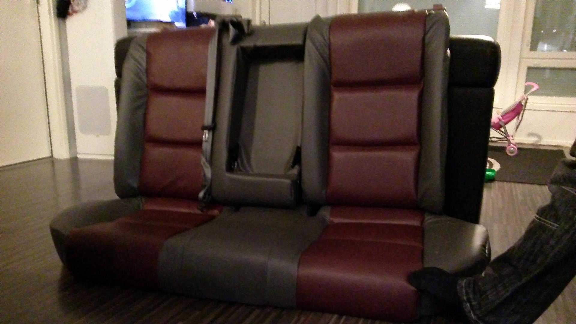 Tuossa nyt muutama kuva valmiista takapenkin istuin osasta. Nahka toivon mukaan asettuu vielä käytössä paremmin.