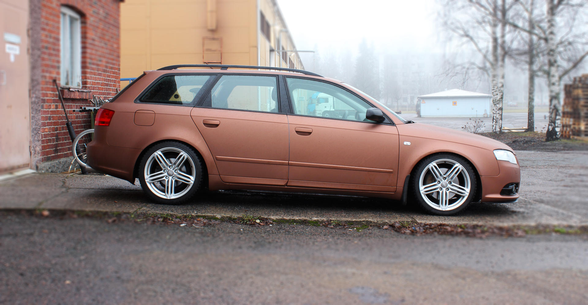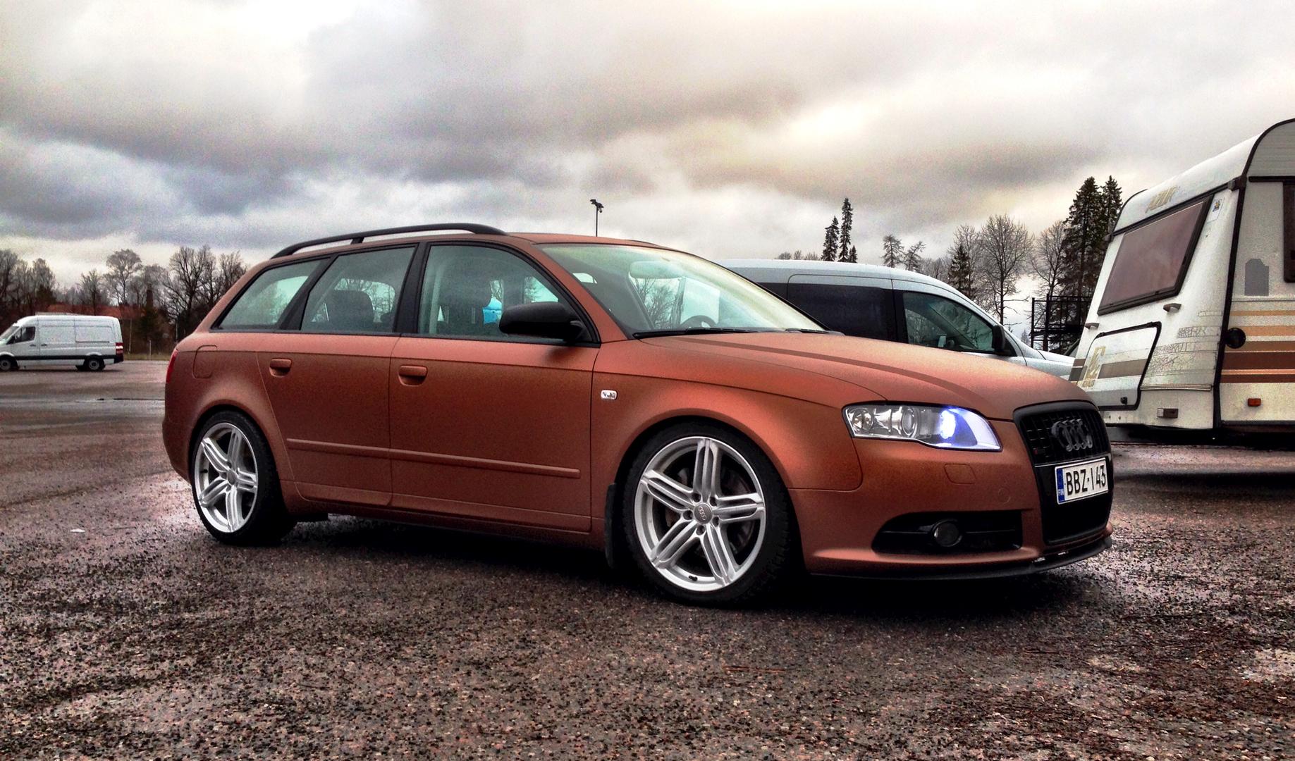 Autossa ei siis mitään erikoista ollut, joten ensitöikseni hommasin talvivanteet, 18" replica RS6 peelerssit.KW:n variante1 lyötiin myös samalla alle.