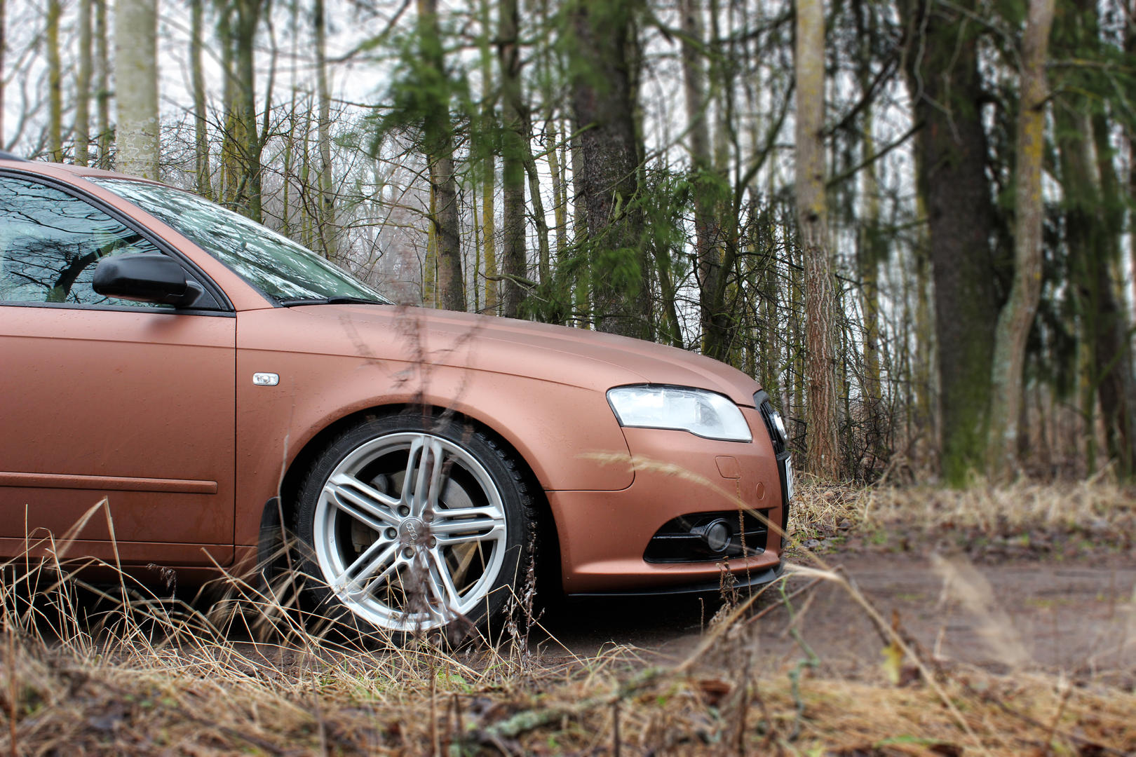 Nyt tuossa joulun pyhinä teippasin auton yli, Avery Dennisonin mattametalliruskealla. Projektista on kuvia täällä. Valmiista autosta ei oikein ole vielä kerennyt ottaan kuin kännykkäräpsyjä, mutta tulossa on.