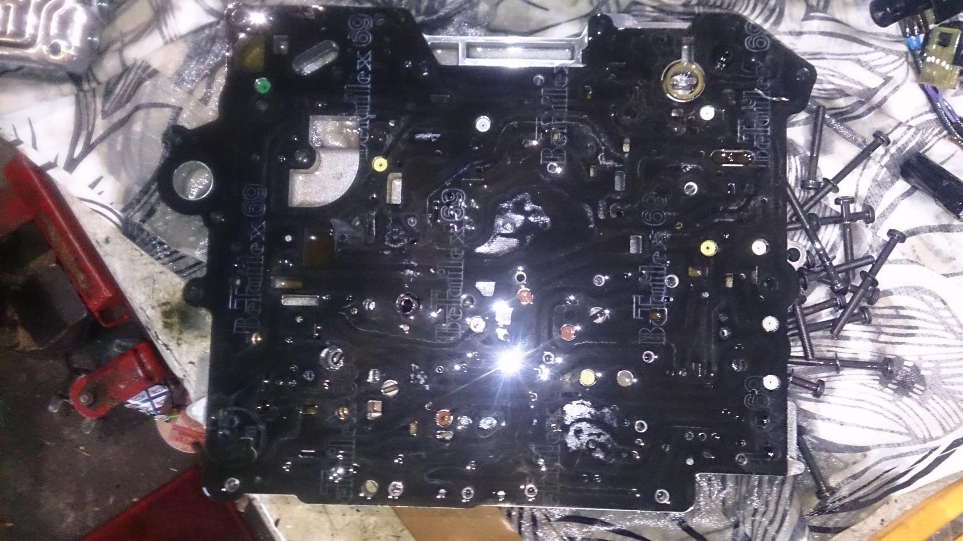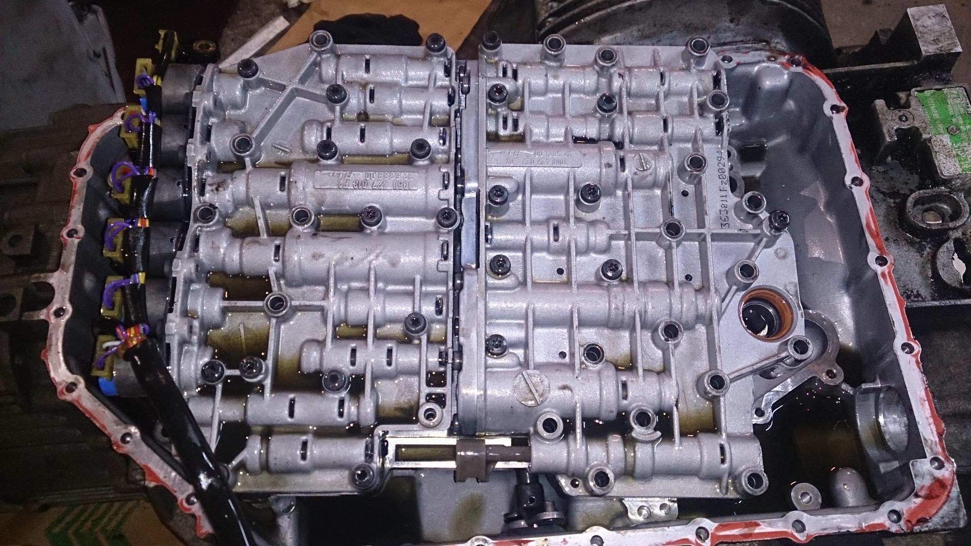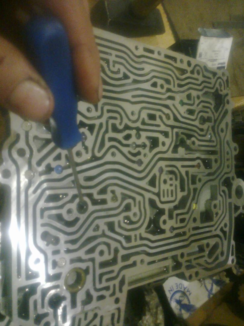 Kun purat vanhaa, niin venttiilistöä purkaessa kannattaa tarkastaa alla olevassa kuvassa oleva takaisku, tuo voi olla yksi syy kakkos ja kolmos vaihteen luistamiseen ja muista kun irroitat tuon venttiilin välissä olevan reikälevyn niin osa kuristimista (pieniä erivärisiä muovi prikkoja) tuppaa jäämään itse reikä levyyn kiinni, itse olen homman hoitanut kääntämällä levyn venttiilin viereen ja laittamalla kuristimet takaisin venttiiliin vertaamalla reikälevyä venttiiliin, homma vaatii kärsivällisyyttä ja itse reikälevy kannattaa nostaa varovasti koska jos kuristimet helisee lattialle niin homma muuttuu mielenkiintoiseksi kertalaakista :)