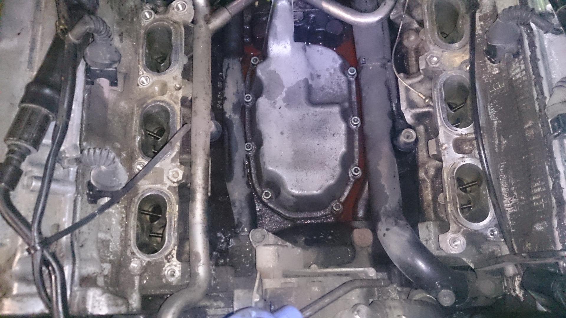 Eli aloitin irroittamalla öljypohjan jonka alta löytyy venttiilikoneisto.