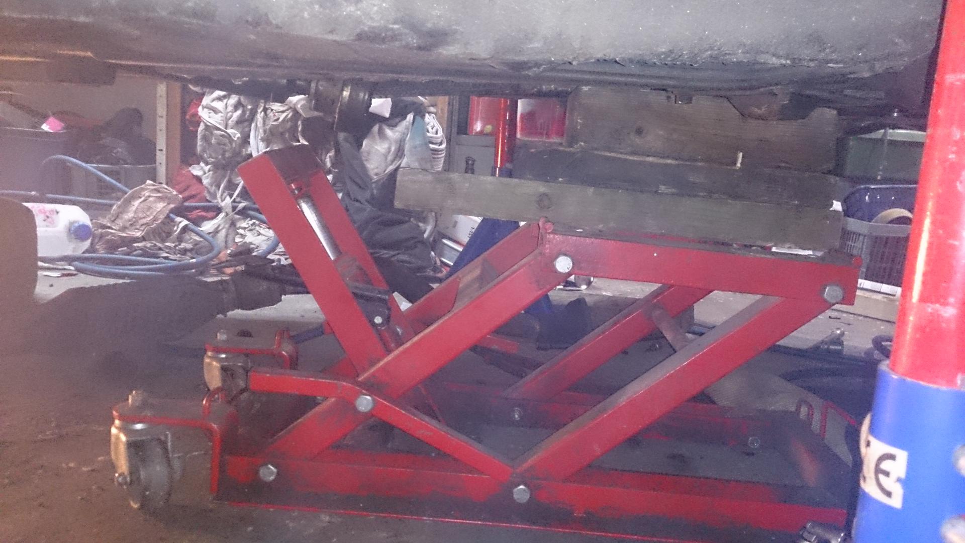 Sen jälkeen irrotin lämpösuojat ja kardaanin, ja koska teen rojektia pukkien varassa niin purin myös kiinnikkeet ettei sitten niistä jää kiinni.