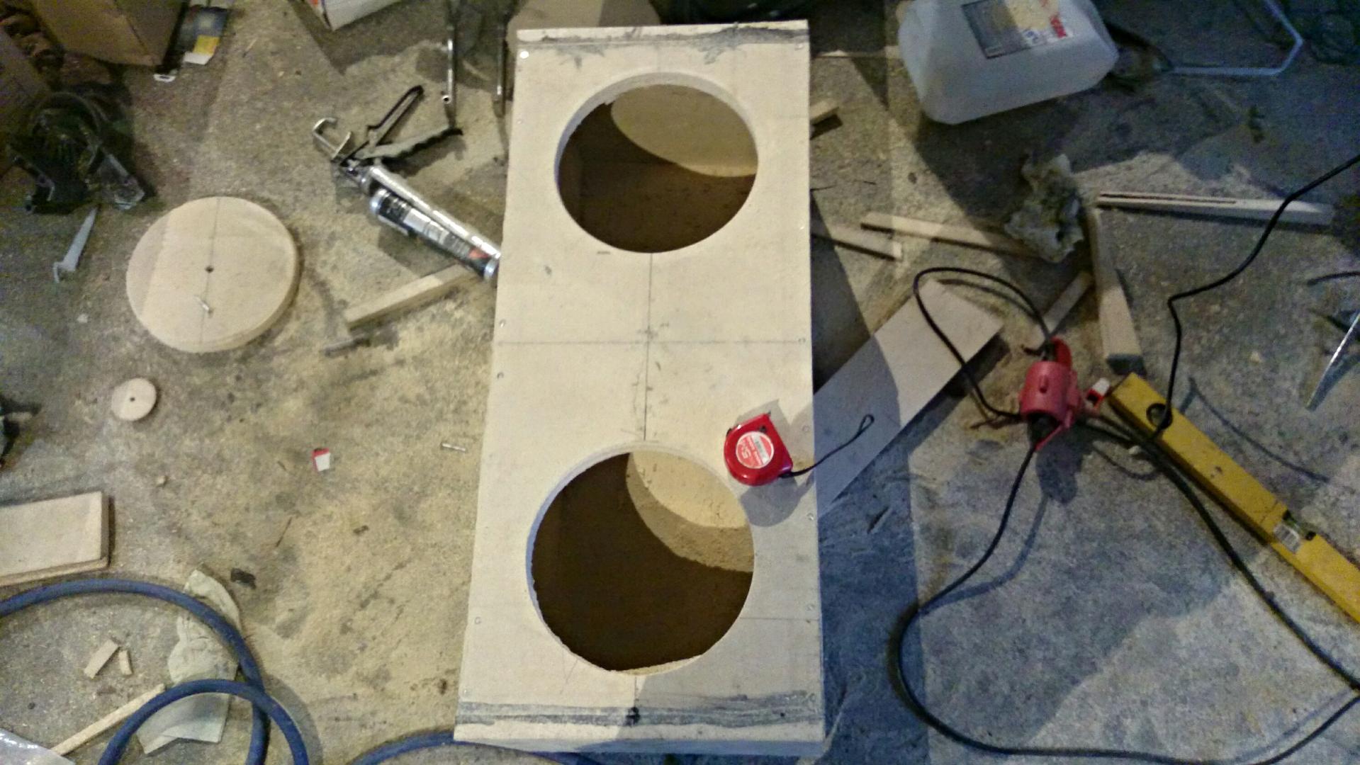 Koteloon vielä tulee: refleksi putki, elementit, virta portti ja tietysti verhoilu.