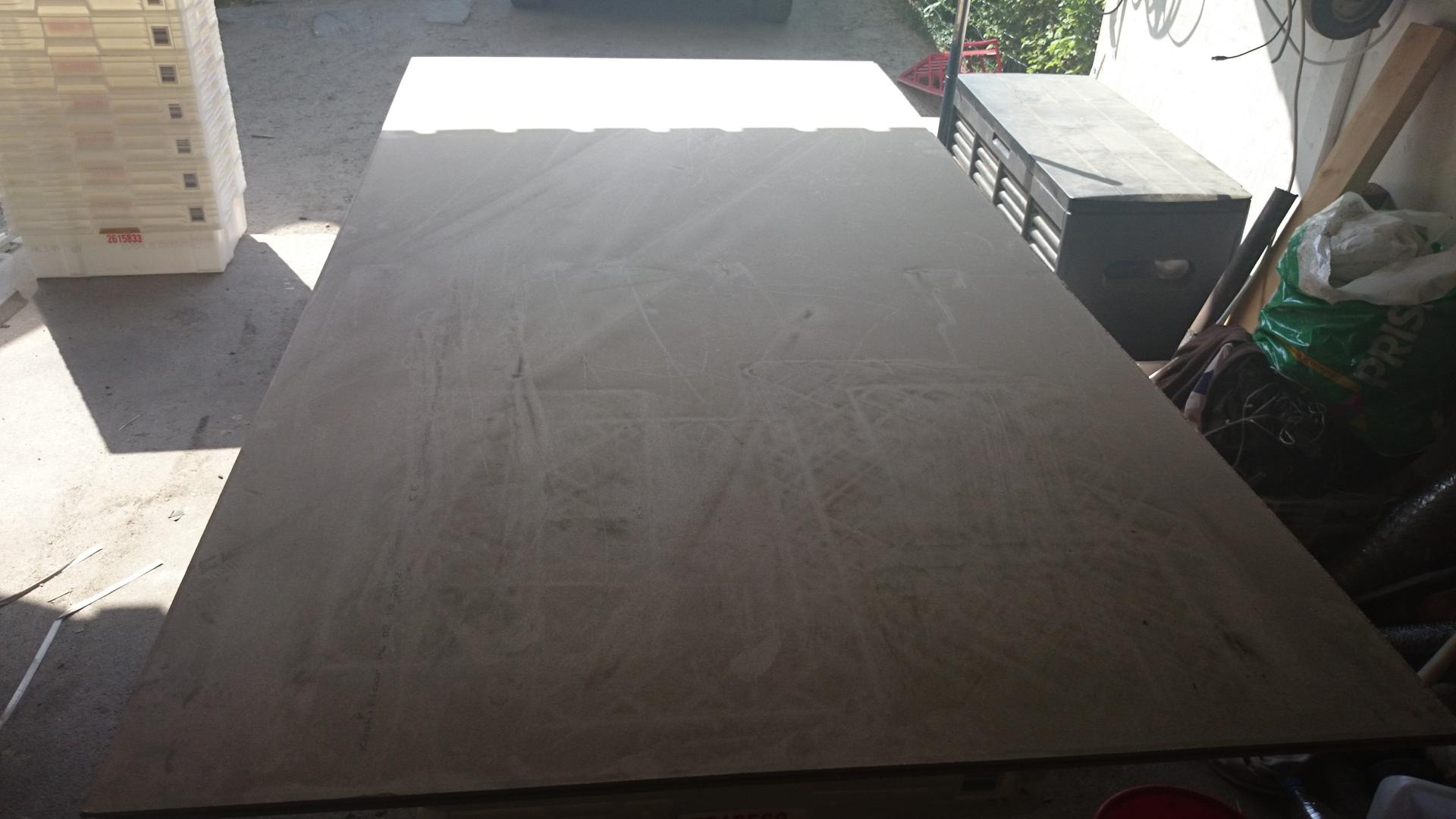 Levy on 22mm lastulevyä, samaa kuin mdf, muttei kestä vettä.