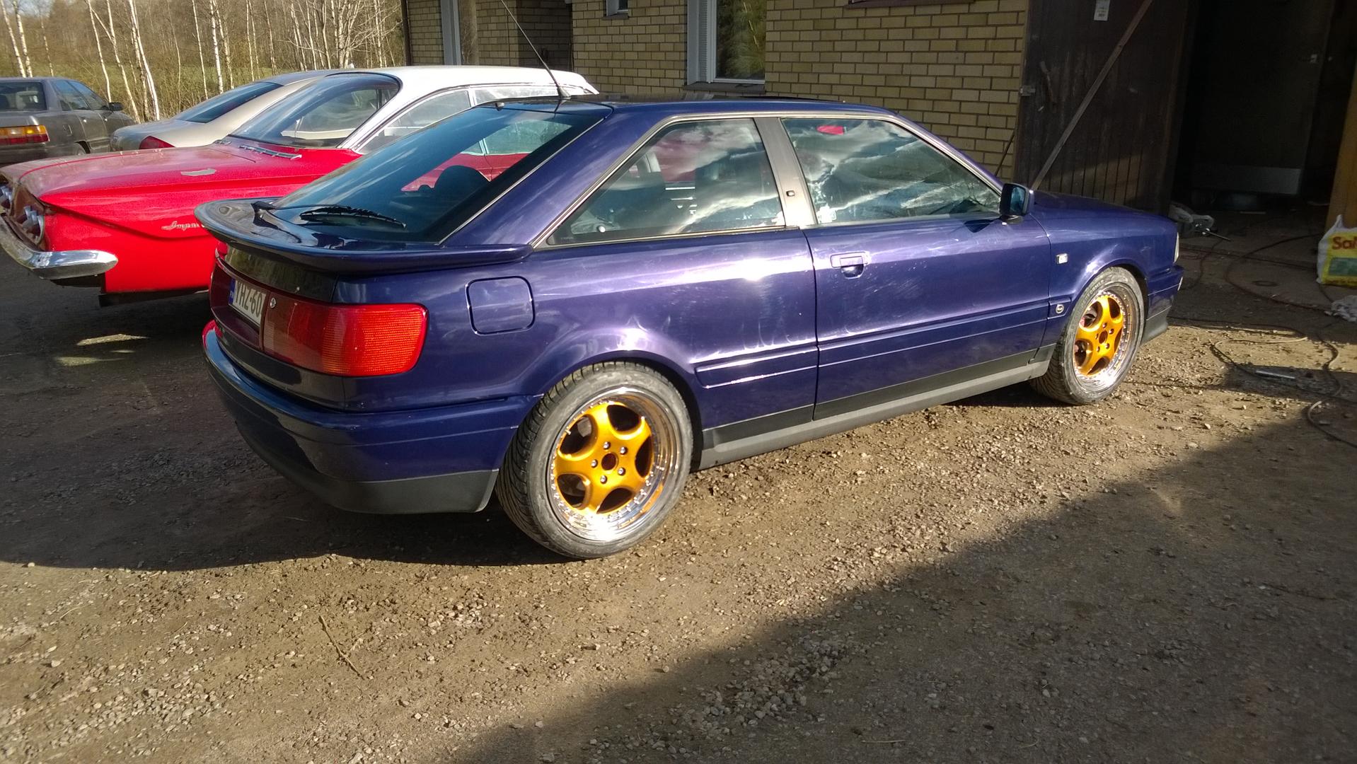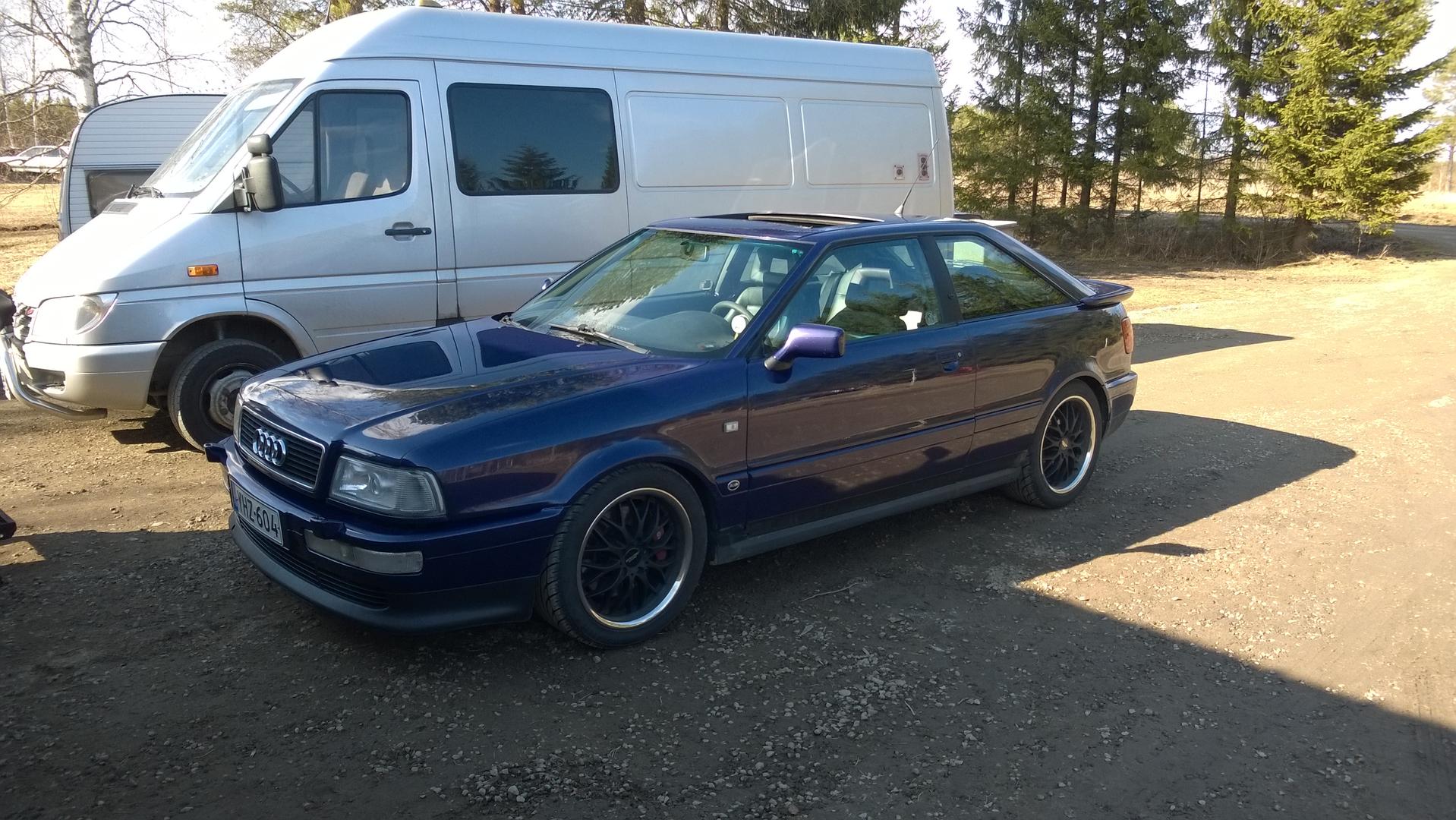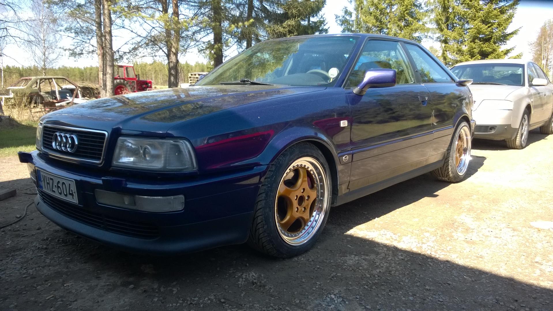 Tämän kanssa yhteiseloa takana 6 vuotta tehty sitä sun tätä. Motti 2.2 20vt aby vuosimalli-94. Käyttövoima e85. Voimaa tuntuis olevan. Auton ostin ruotsista-07 syksyllä. Harvinainen niin sisustaltaan, kuin ulkokuoreltaan. Takaikkunat aukeaa sähköllä, penkit on ilmeisesti Porchesta. Väri on Byzanz-violett jota ei oo ollu s2:n värikartassa. Ja mikä parasta, kaikki löytyy lisävarustelistasta peräkontin tarrasta. Kulkee varttimailin alle 12s. Tällä hetkellä. Autossa on KW:n variante3 alusta, Whitelinen vakaaja, Powerflex puslat joka nurkassa. Voimansiirto omatekemillä puslilla toteutettu. Wagnerin imusatsi, Kkd:n pakosatsi ja se kaikkienparjaama Hx40 super!