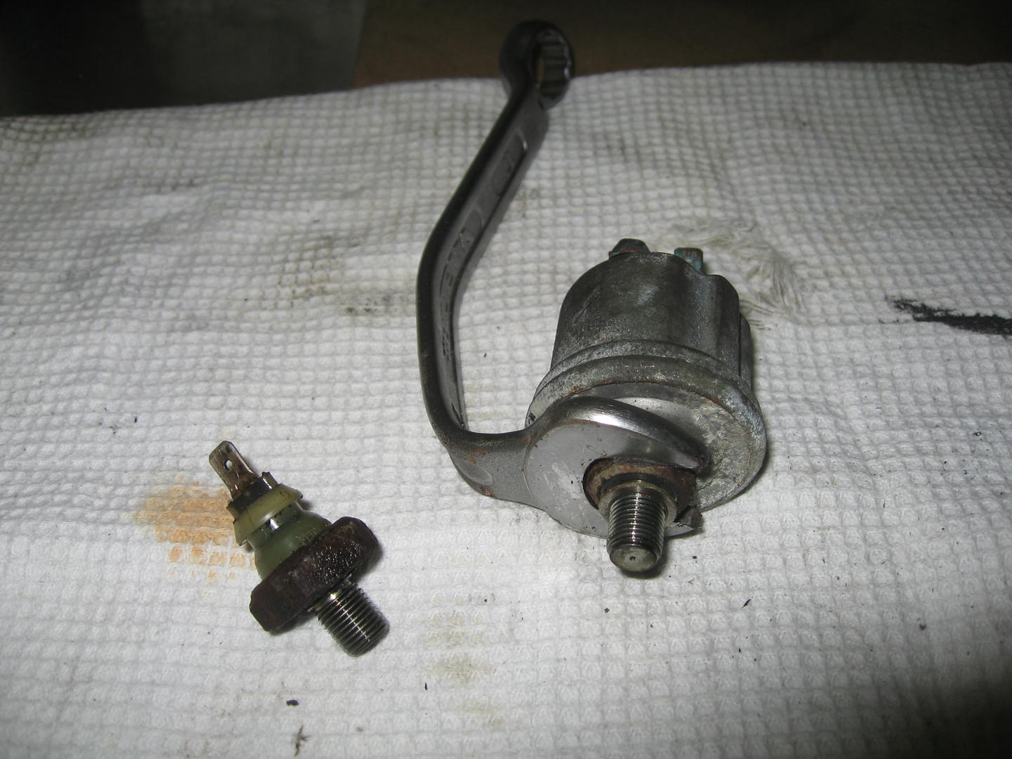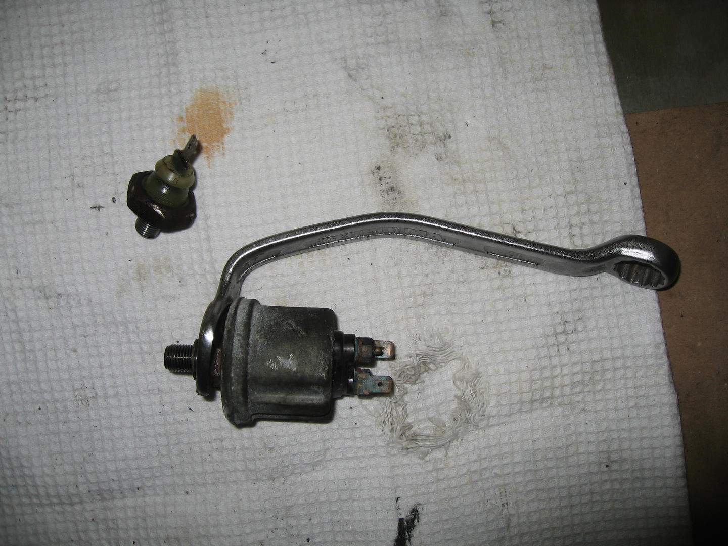 Tänään laitoin uuden syylärin paikoilleen, tilasin saksasta Hella/Behrin ja vaihdoin samalla uuden lämpökytkimen. Vanhasta syyläristä ilmausruuvin viereinen alue oli aina kostea, siellä oli juuri silmin nähtävä 10 mm pitkä hiushalkeama. Nestettä ei ole silti tarvinnut lisätä kertaakaan minun omistusaikana.