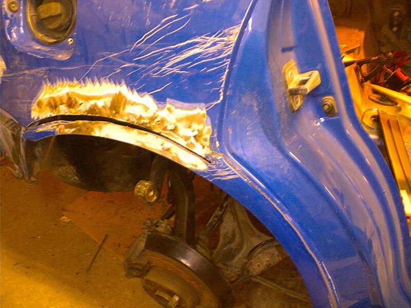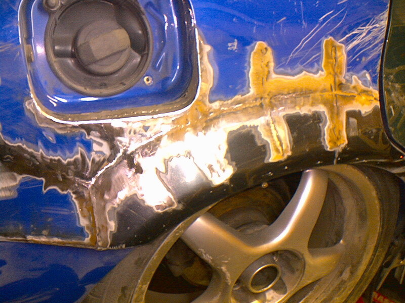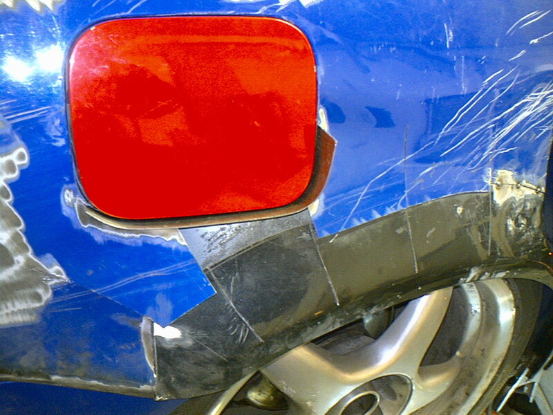 Viimeinkin riitti voimia taas tehdä lisää. Nyt on myös toinen kaari on leikattu, levitetty ja hitsattu. Tein hieman eritavalla toisen puolen, otin varaosa-autosta isomman palan niin väliin ei tarvinut laittaa mitään lisäpeltiä. Tankin luukun kohta vaati vähän lisätyötä, mikä oli onneksi aika joutuisa tehdä. Kaari pitää vielä tinata, ja sitten alkaakin paklaus. :) Kattopelti pitäisi vielä vaihtaa, mutta jotenkin houkuttelisi paklata sekin. Katsotaan nyt. (edit: eli vaihdetaan)