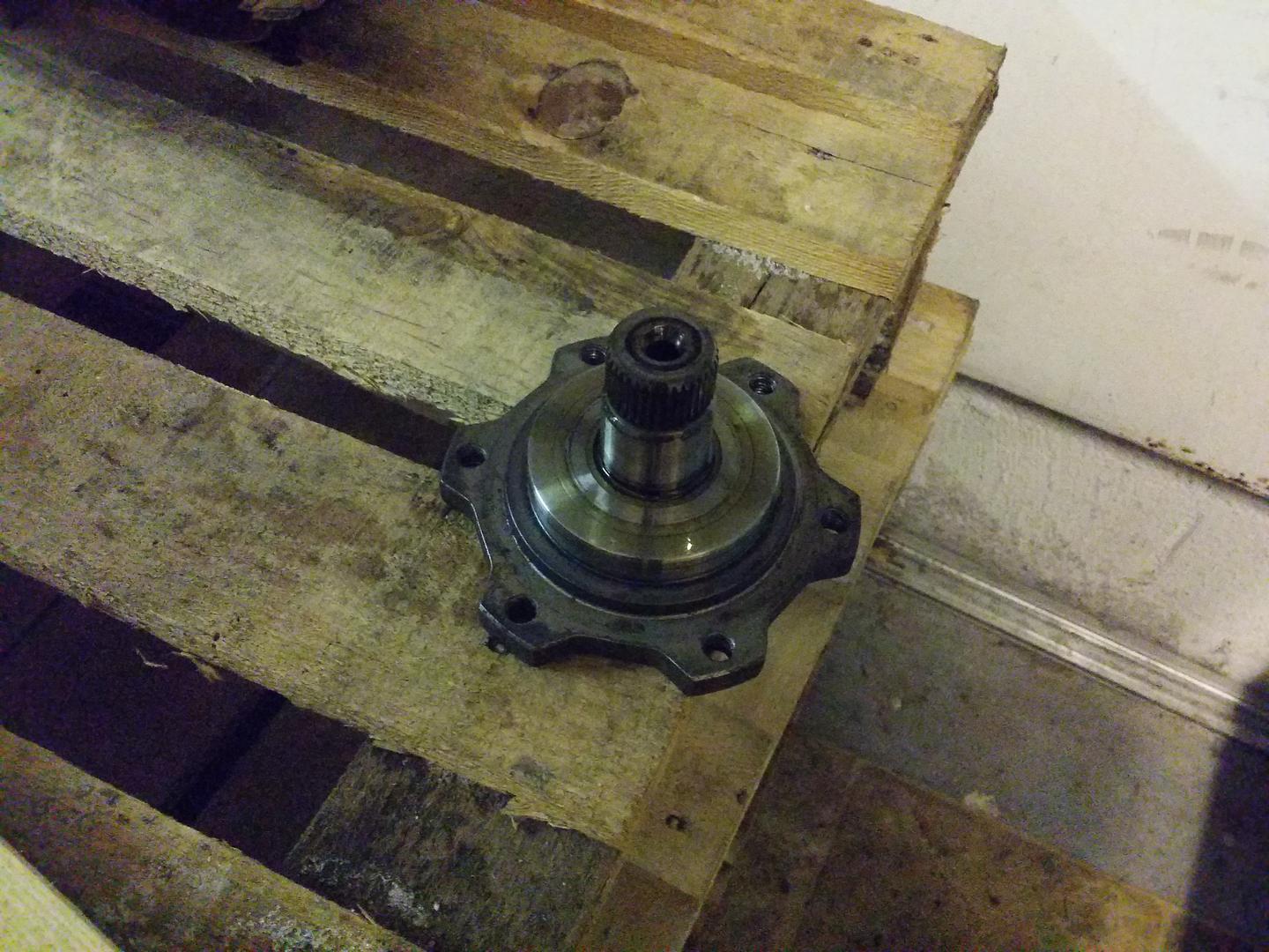 Otin koko etuperän pois. Se ei olisi ollut välttämättä pakollista mutta totesin painonsäästön auttavan loppupaketin siirtelyä. Kehältä pultit kotelosta auki ja koppa lähtee irti. Kuskin puolelta pitää avata 3 pulttia jolloin sen puolen vetolaippa ja väliakseli lähtevät yhtenä pakettina pois.