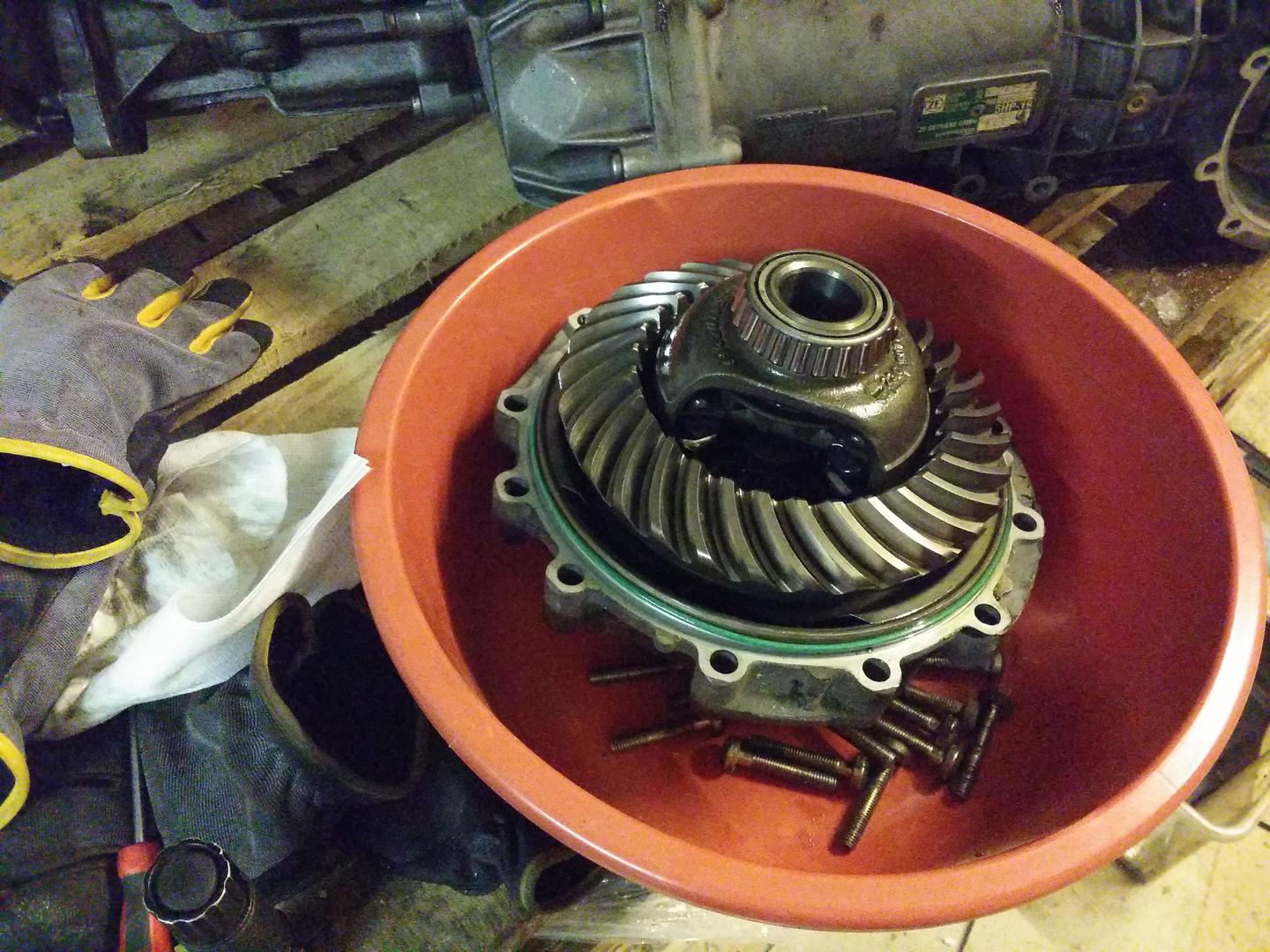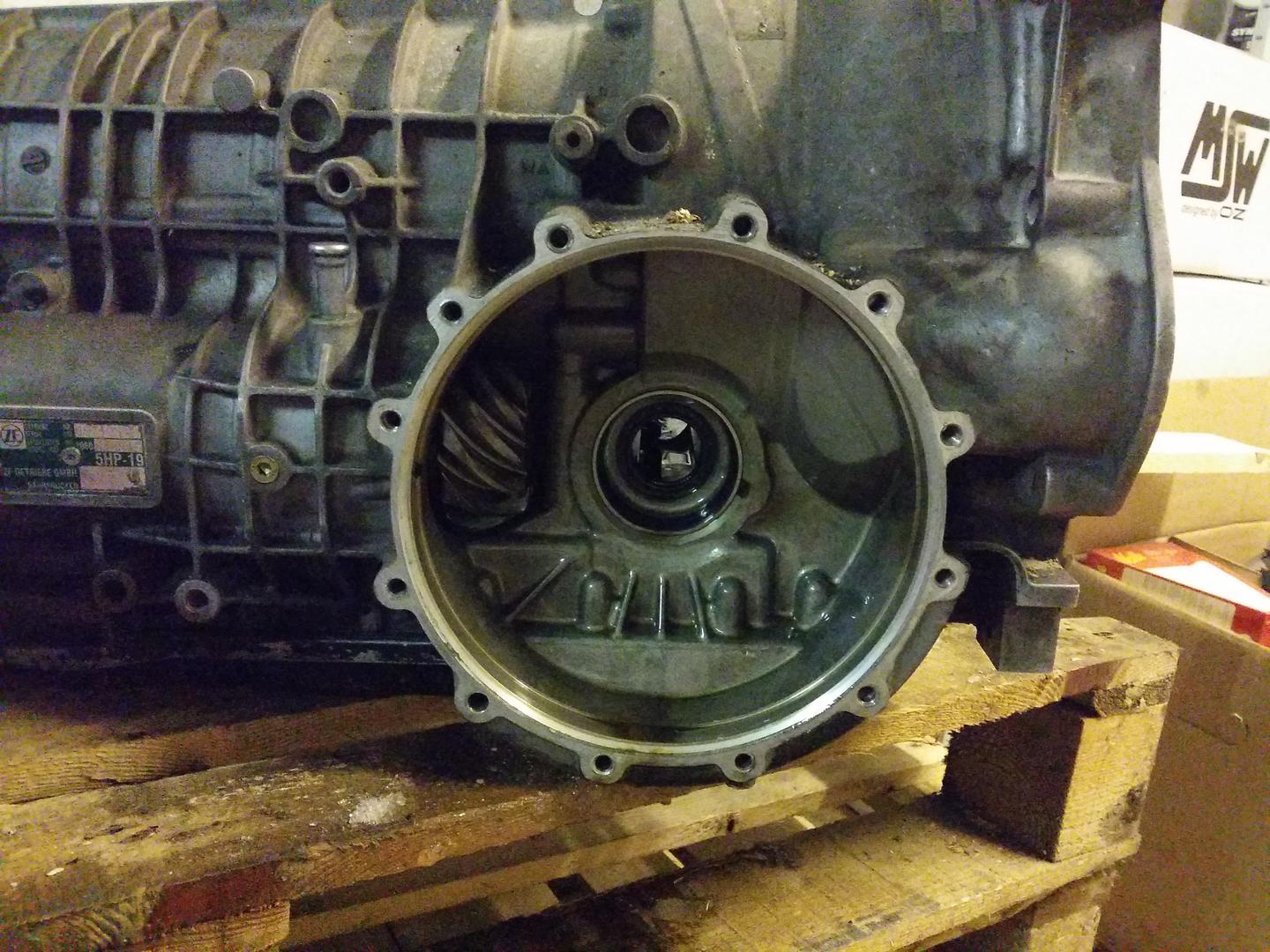 Otin jakovaihteiston (kuva 2.) pois, helpotti kummasti kun lähti muutama kymmenen kiloa painoa pois. Öljypumpun irrottaminen meinasi pukata hikeä pintaan, ei sitä turhaan kehuta olevan vitt*mainen irrottaa. Lukkopihdeillä vetäen tuli mutta sai sitä kyllä aikansa repiä. Loput osat lähtevätkin sitten ihan nätissä järjestyksessä.
