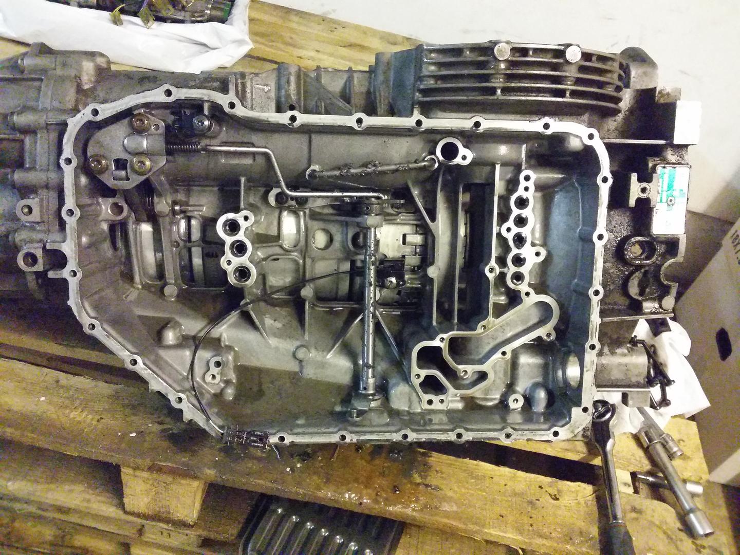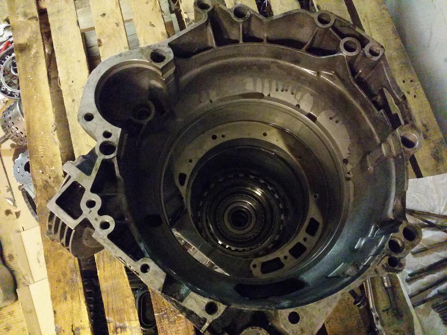Kaikki rummut osoittautuivat ehjäksi. Kaikki stefat joita olen silmäillyt, ovat taasen osoittautuneet enemmän tai vähemmän rikkinäisiksi. Edellämainitut laakerit (esim. kuva 1.) ovat isolta osin entisiä ja niin ovat varmasti ne kitkalevytkin kunhan ne sieltä esiin saa kaivettua. Kolmannessa kuvassa näkyy sitten laatikon osia purkujärjestyksessä vasemmalta alkaen: Öljypumppu, input shaft, planeettakannatin, aurinkopyörä ja seuraavan rummun (kuva 4.) sokka jo irrotettuna.