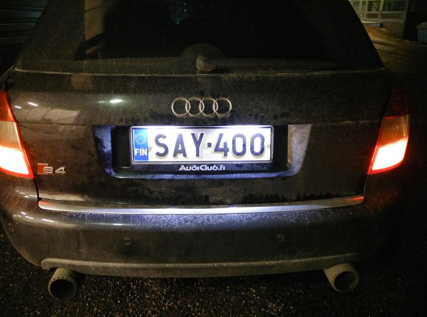 Vihdoinkin sain turailtua kilvenalusen taakse sekä ledit rekkarin valoiksi. Oli siis nuo Audin omat ledimodulit ja muuten oli täysin plug'n play, mitä nyt toisella puolella joutui vaihtamaan piirilevyn toisin päin jotta ledit palavat. Tästä toki Harjula jo varoittelikin kun on lukkopesä takaluukussa.